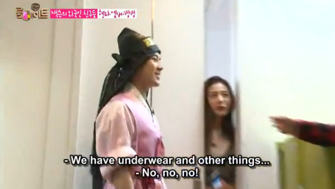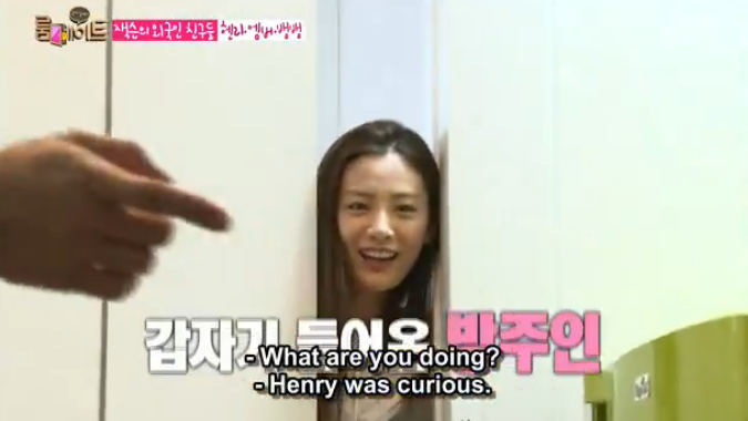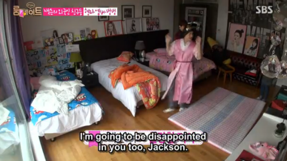 Jackson invited his friends over to the ‘Roommate‘ house, so Amber, Henry, and BamBam showed up. But really, the main thing that happened is that Henry is … I dunno if he’s trying too hard to be funny or what, but he came off seriously fucked up in this sequence that led to him digging through the clothes/underwear of the female roommates.