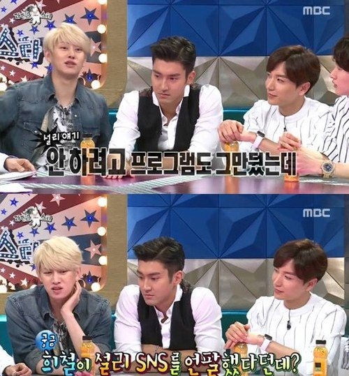 In things I had no idea was a controversy, Sulli had apparently not been following some of her closest friends and f(x) group members on Instagram (her private Instagram), and thus netizens concluded that everybody hates her and she’s going to run off with Mr. Big Dick, but Heechul explained the situation on ‘Radio Star‘.