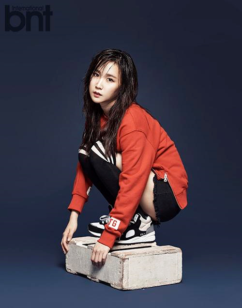 Crayon Pop's ChoA, Way, and Gummi looking mad serious and all adult like for BNT International. It's not that surprising that they pull it off well, but it is still a departure from their usual looks.