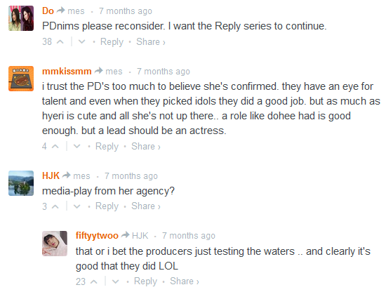 5. [+674, -51] At least Eunji and Go Ara had acting talents to back it up, this will bet he first ‘Reply’ series to fail because of Hyeri