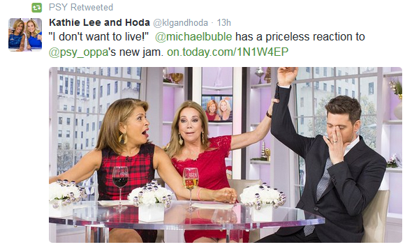 Some people are legit mad over this, which I sorta get since Buble was a dick (and he is one regardless of this anyway). But as usual, Psy had the best reaction to this story, retweeting the ‘TODAY’ show account and moving on with his life.
