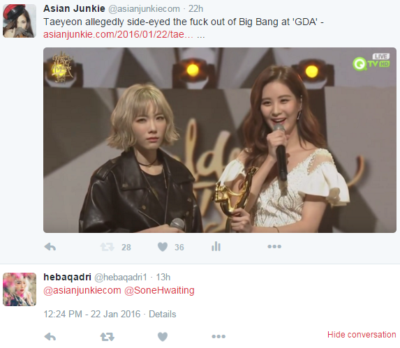 Well, technically speaking, I inferred that Taeyeon dissed God, which I suppose makes her a GOD-HATING MILITANT ATHEIST SLY FOX DERANGED HOMICIDAL KIMCHI SNEAKY BITCH.