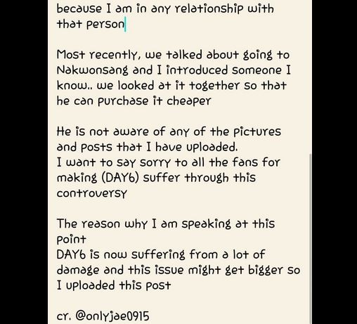Anyway, as you can imagine, I still have no idea what people’s problem is. Even for idols, I don’t get the “scandal” when they’re found out to be dating, but Day6 aren’t even technically idols are they? Fans can say they’re actually pissed at her for dropping information to sasaengs, but if that was the case, why would his fansites close and not just focus on her wrongdoing? Pathetic.