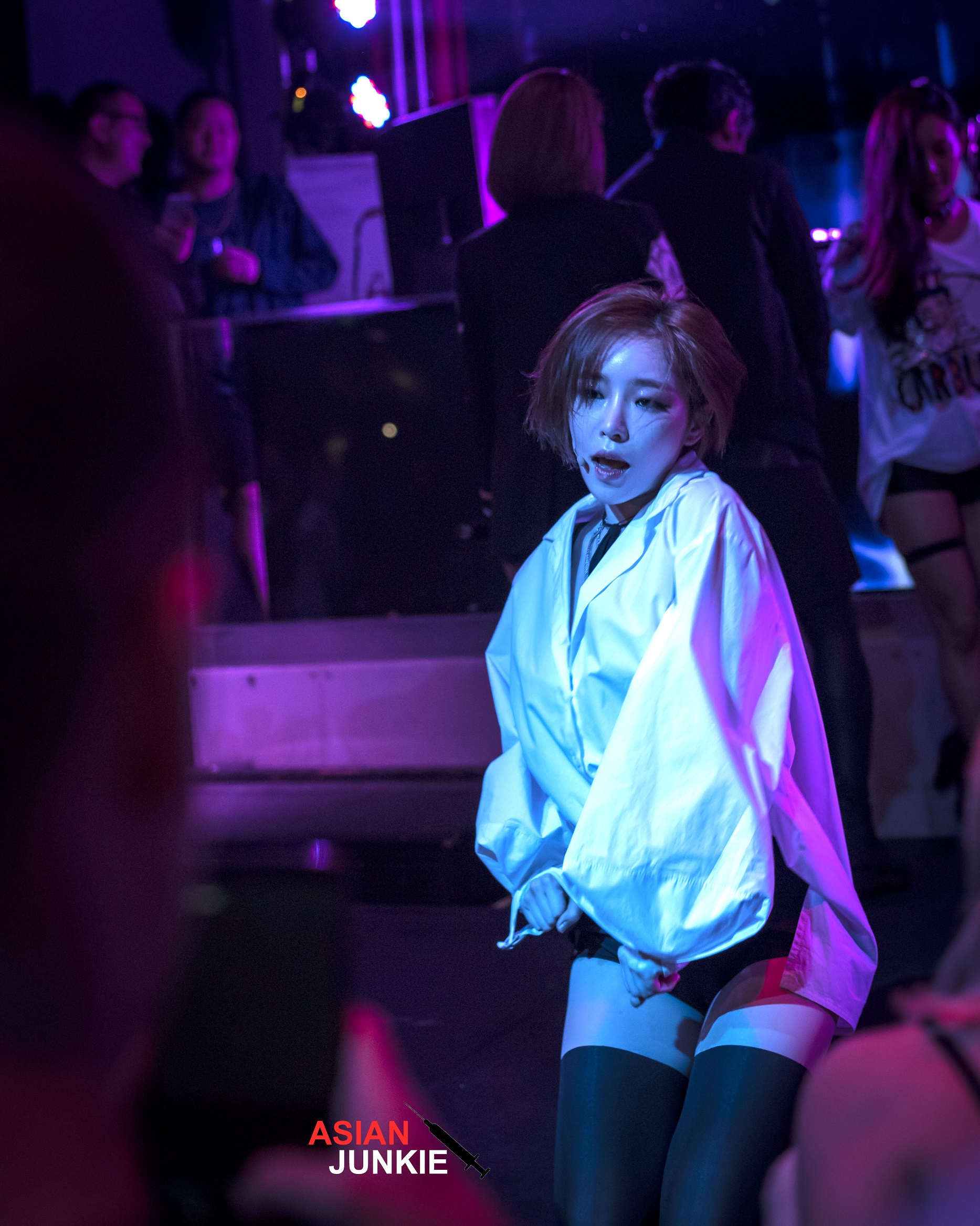 Feria is the classic Korean night club, basically like the one you see in every Korean drama you’ve ever watched. So I was very curious as to how they were going to have BEG perform where there is no stage. But when I got there I was pleasantly surprised at the stage setup in front of the DJ booth, with the whole thing taking up about half the dance floor.
