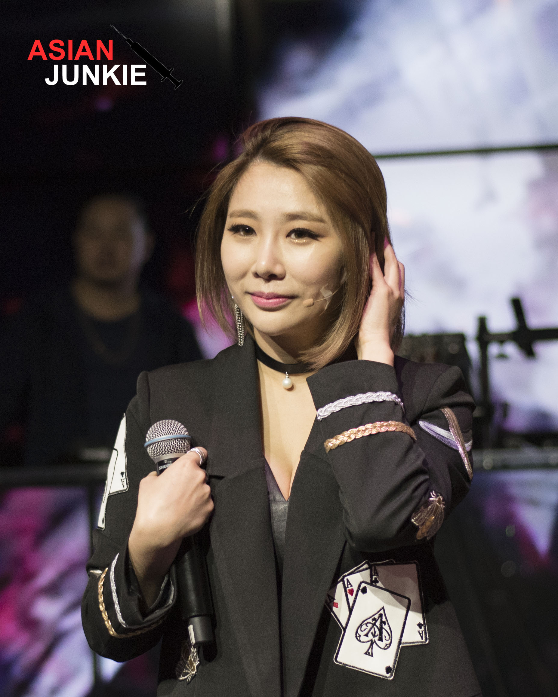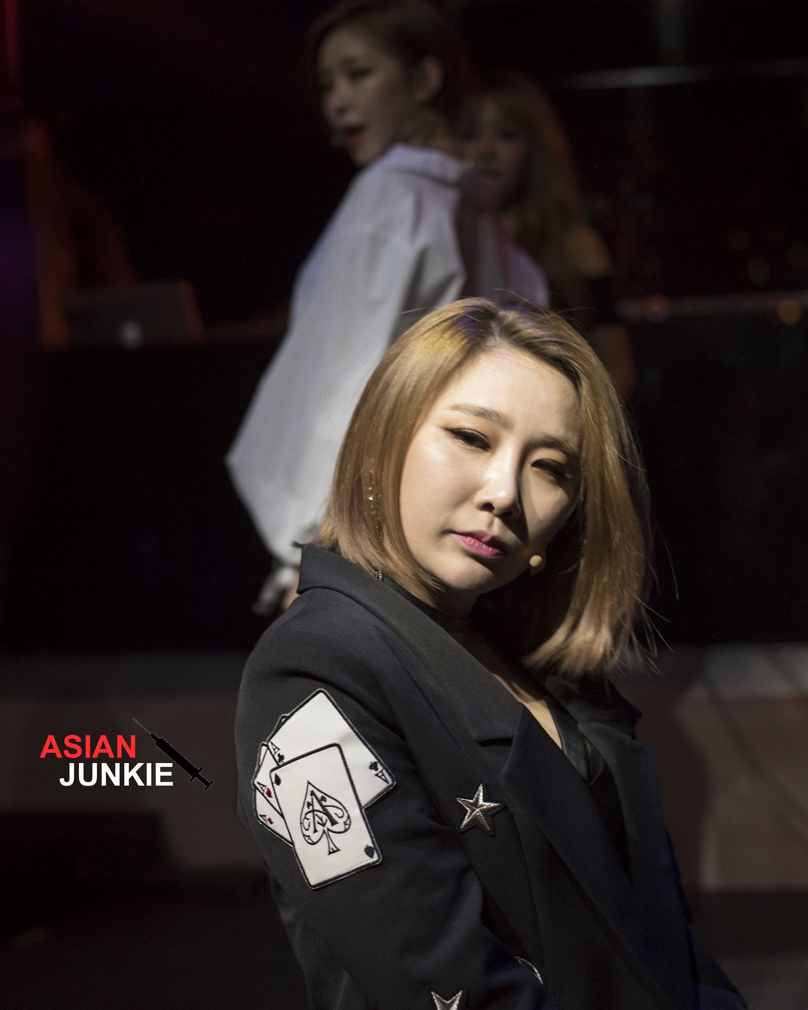 Suddenly the fancy new stage lighting was dimmed to the point of pitch black, and the crowd fell so silent I could hear the fanboy behind me panting. Then Ga-In, Miryo, JeA, and Narsha took the stage, and with dancers! The stage was still small despite Feria’s best efforts, so I was quite surprised they didn’t run each other over during the choreography. But these veterans knocked it out of the park with an array of songs, including “Sign“, “Kill Bill“, “Brave New World“, and “Abracadabra“.