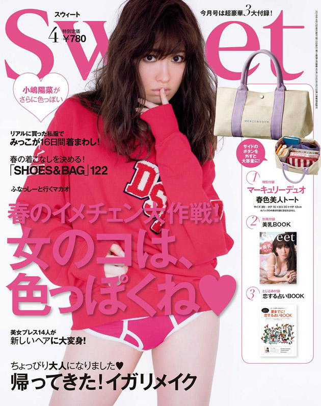 Kojima Haruna is still in AKB48, probably cause she’s popular and can do whatever she wants at this point. And thankfully part of doing whatever she wants is modelling for whatever she wants, which she puts to effective use in April 2016’s Sweet.
