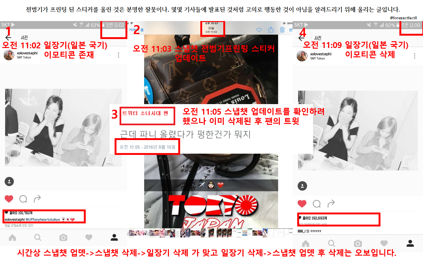 Basically a lot of what’s making it even worse than it already was for Tiffany is that netizens believe that Tiffany deleted the regular Japanese flag on Instagram before she posted up the Snapchat, thus proving in their eyes that she’s some kind of malicious right-wing Japanese nationalist or something and posted the Rising Sun Flag on Snapchat with those intentions.