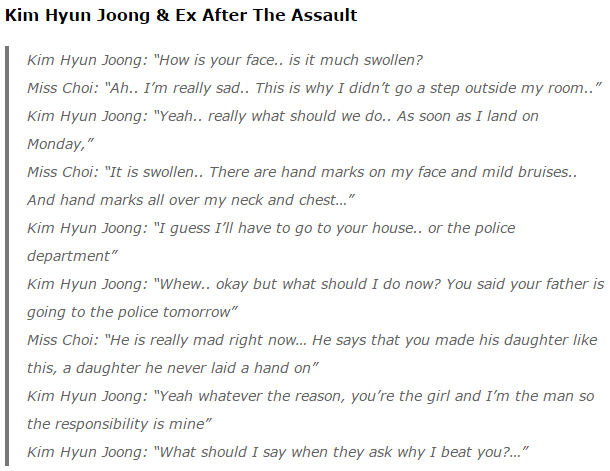 …and then there were the text messages where Kim Hyun Joong admits beating her…