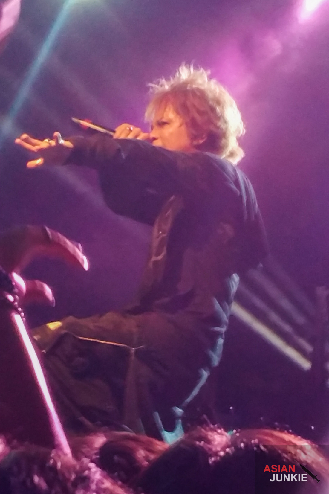 At one point Hyde got on his knees and sang to the screaming girls in the front row in front of Kaz (and in front of us) before hopping around to the other side. And ya know, I always have a good time at shows, but there’s those rare moments when you feel like you might have died and gone to heaven. Or hell. So I basically stood in purgatory staring at this monstrous god of sexy and evil. Hyde was perfection.