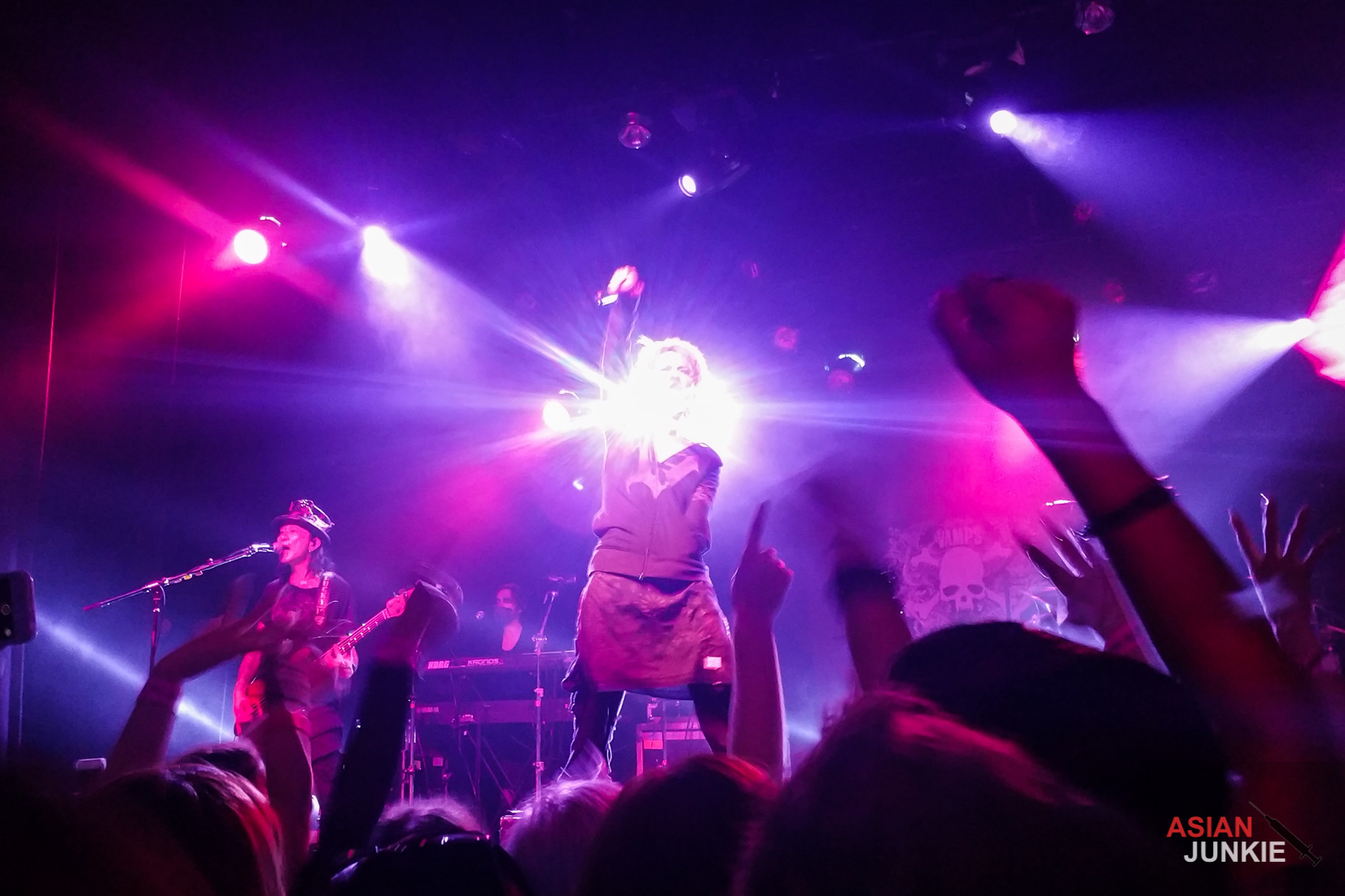 Hyde then stepped out in cargos, a utilikilt, and a hoodie unzipped half down showing his flawless chest, sending the crowd into an orgasmic fury. Vamps flew through a flurry of heart-pumping adrenaline-inducing tracks, none that I recognized other than his rendition of “Diamonds” by Rihanna. It didn’t matter though, as I was suddenly 18 and in love again.
