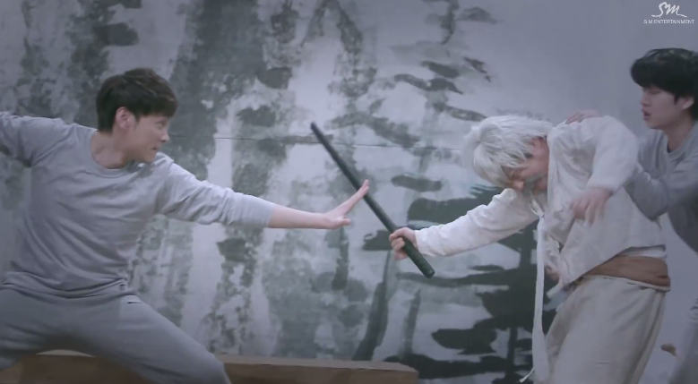But then Heechul and Kyunghoon storm in like a scene out of ‘Gokusen‘ — or for a Korean comparison, ‘My Wife Is A Gangster‘ — and beat them all up. Heechul goes in for some sweet Momo action, but Momo disses him to run to Kyunghoon.