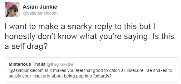 Insecure Taeyeon stan snakes? Shit, even I didn’t drag them like that.