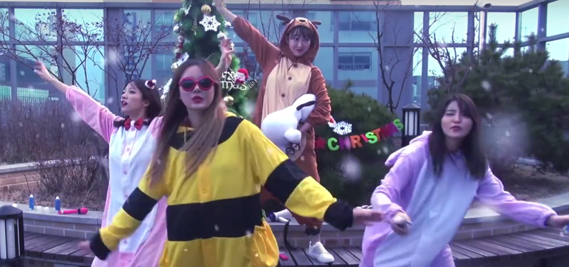 EXID gave a Christmas gift to their fans in the form of a video on V app in which the group (minus Solji) cover Turbo‘s “White Love” in onesies.