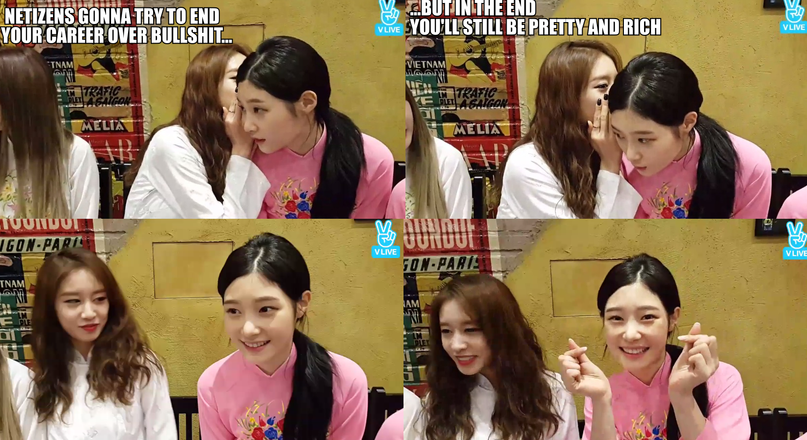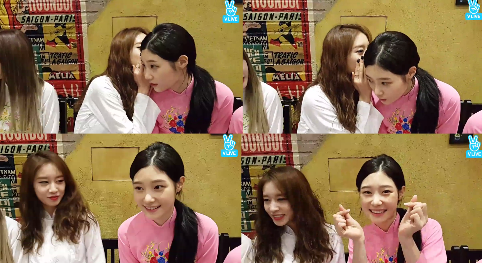 The iljin groups of T-ara and DIA met up yesterday and they held simultaneous broadcasts on V, where Jiyeon gave Chaeyeon the best advice she could give.
