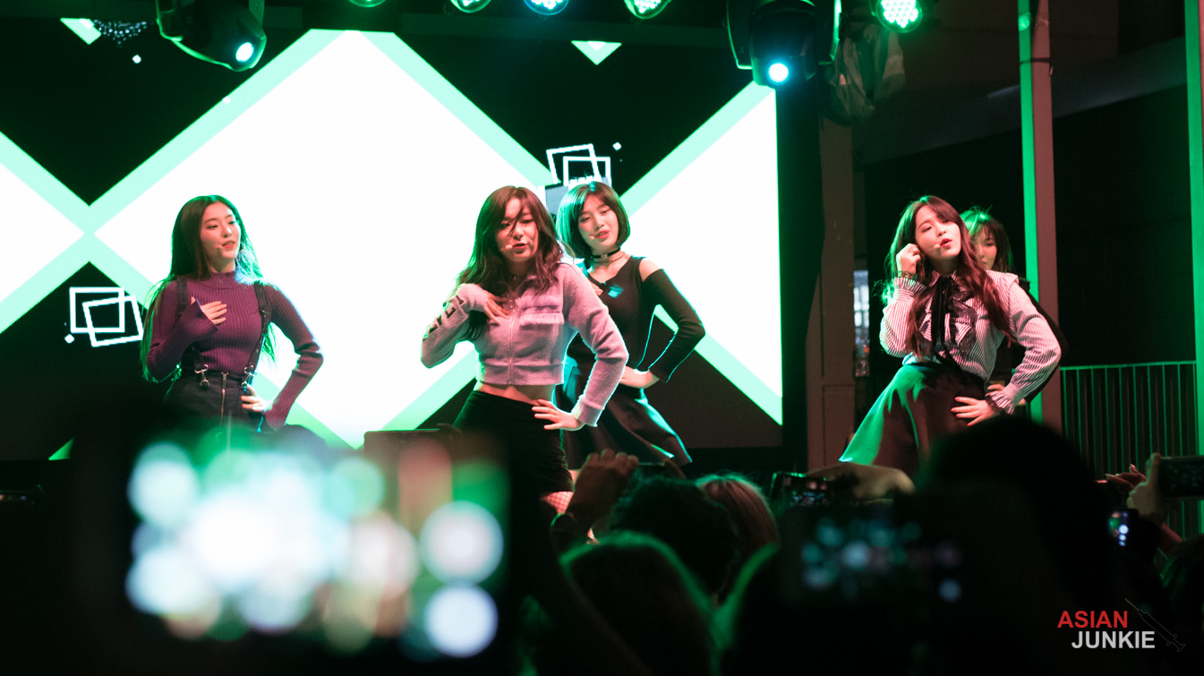 As the last act and headliner of the event, the entire crowd at the Belmont in Austin, Texas was pretty much dead on their feet at that time. Well, at least until the girls stepped on stage. As Joy, Seulgi, Yeri, Irene, and Wendy stood under the lights, the crowd went from dead to resurrected with a jolt of lightning energy that shot through the entire venue. Everyone collectively went bananas screaming their heads off as the girls smiled and waved to fans. They greeted the crowd, each doing their introduction, all in English to a packed house. They thanked KPNO for allowing them to participate in the show and thanked fans for waiting to see them.