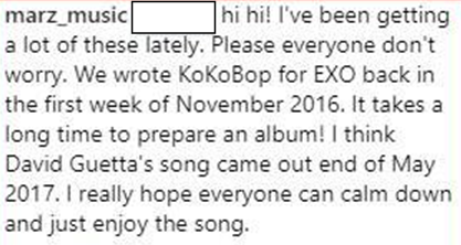 In the latest round of K-pop plagiarism accusations, netizens are claiming EXO‘s “Ko Ko Bop” sounds like David Guetta‘s “Light My Body Up” because … sure.