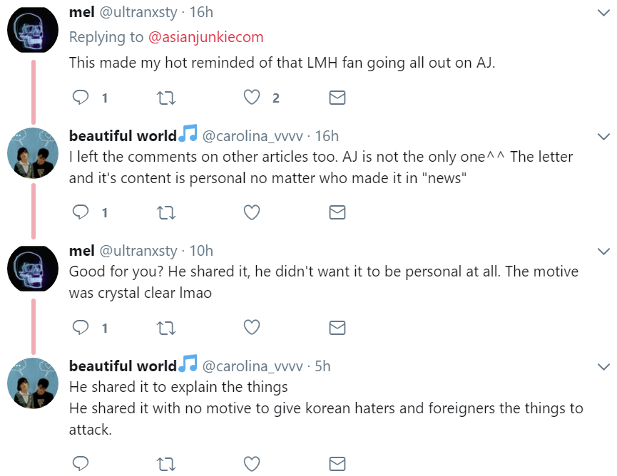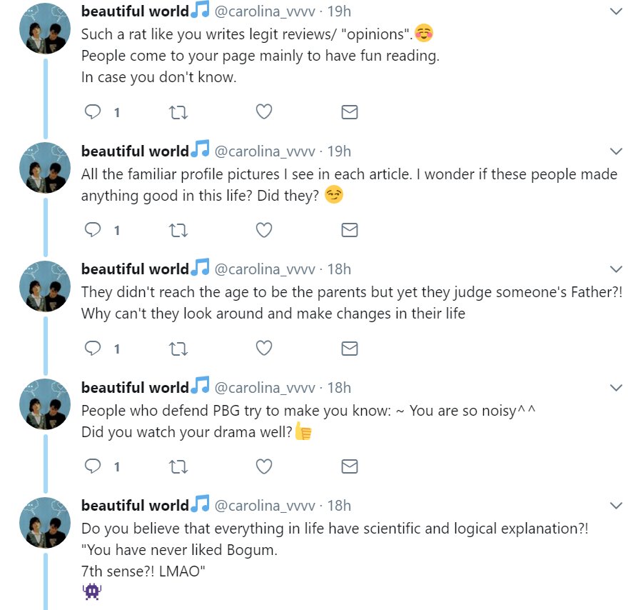 Nobody has had to speculate much about any of this, since the sources are Park Bo Gum and his father themselves, so there should be basically zero controversy about covering the story itself. Well, unless you are this stan in my mentions on Twitter.