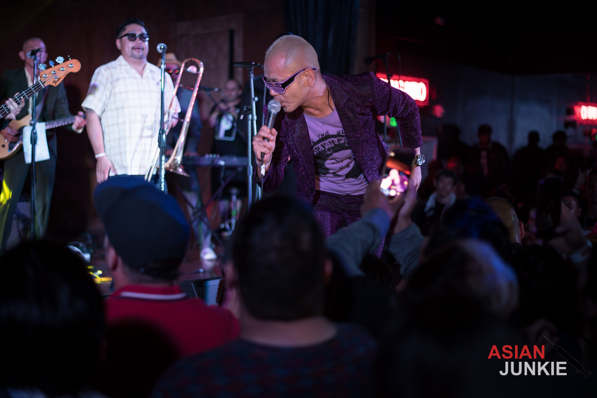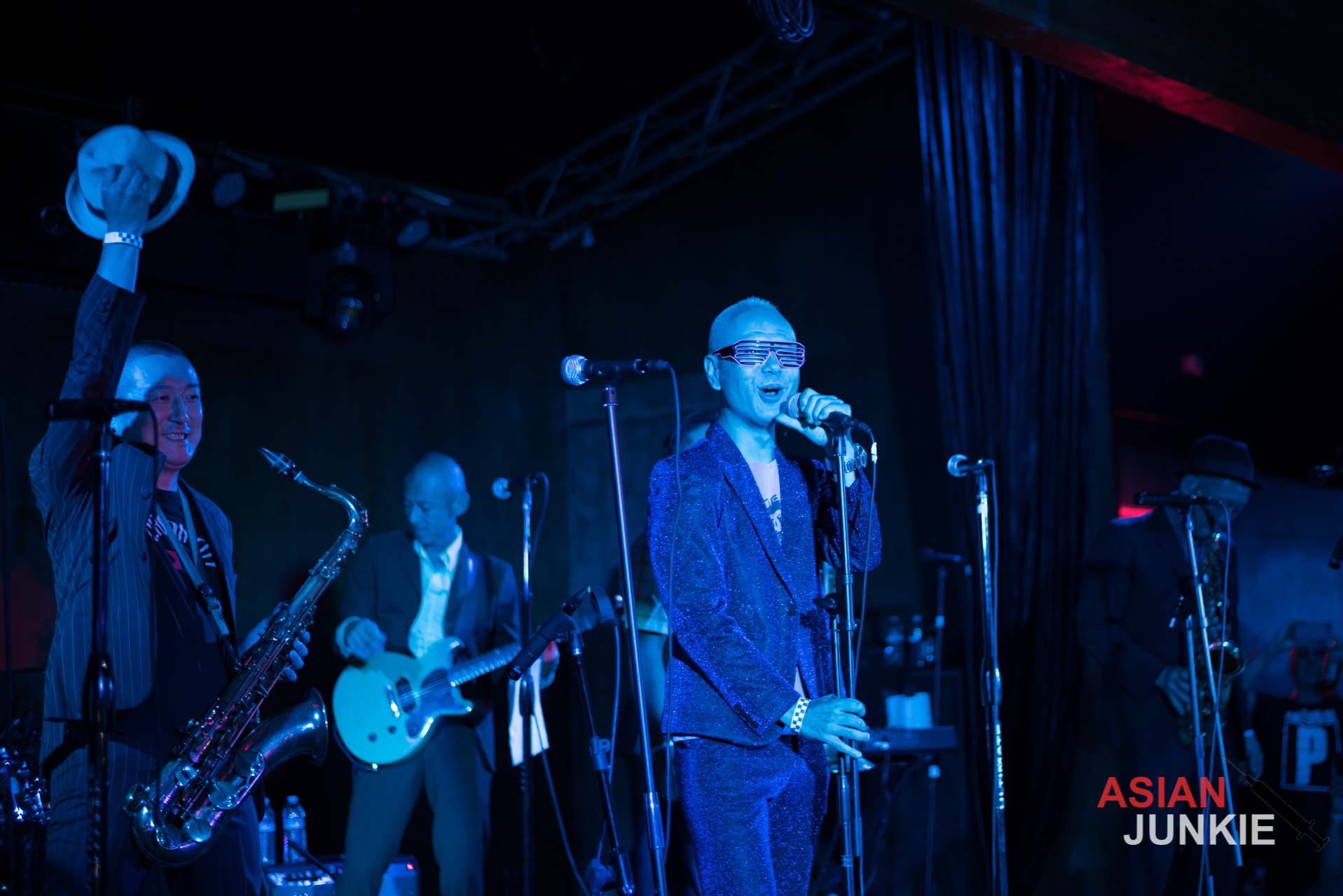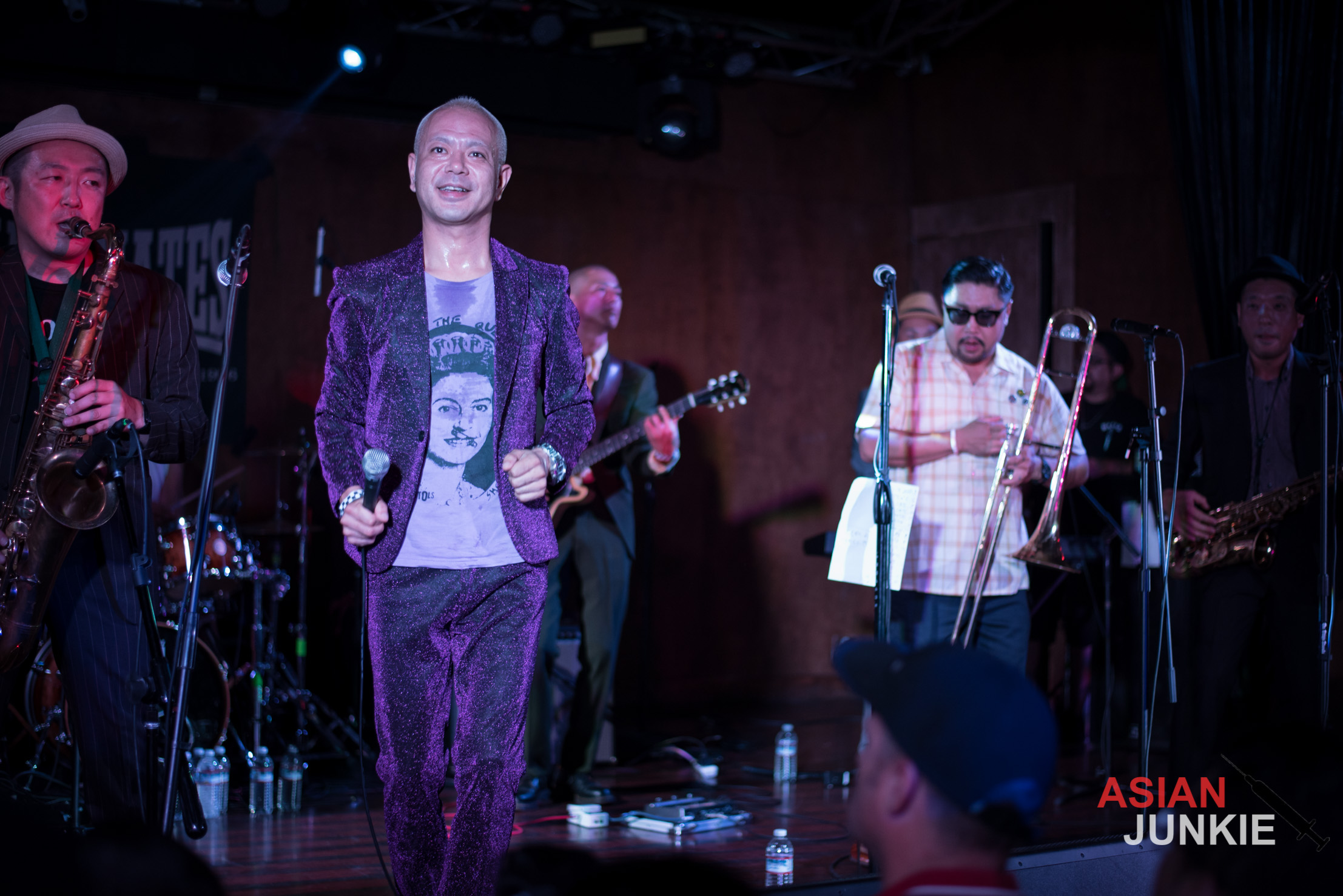 He stood out in his glittering purple suit and screamed into the microphone for song after song. With tracks like “Nishiogi Tokyo“, “Scooter Girl Scooter Boy“, “Skinhead Running“, “Justice Calling 69“, and “Ruder Rule“, the night flew by as fast as he swung the mic over his head and security snatched at crowd surfers.