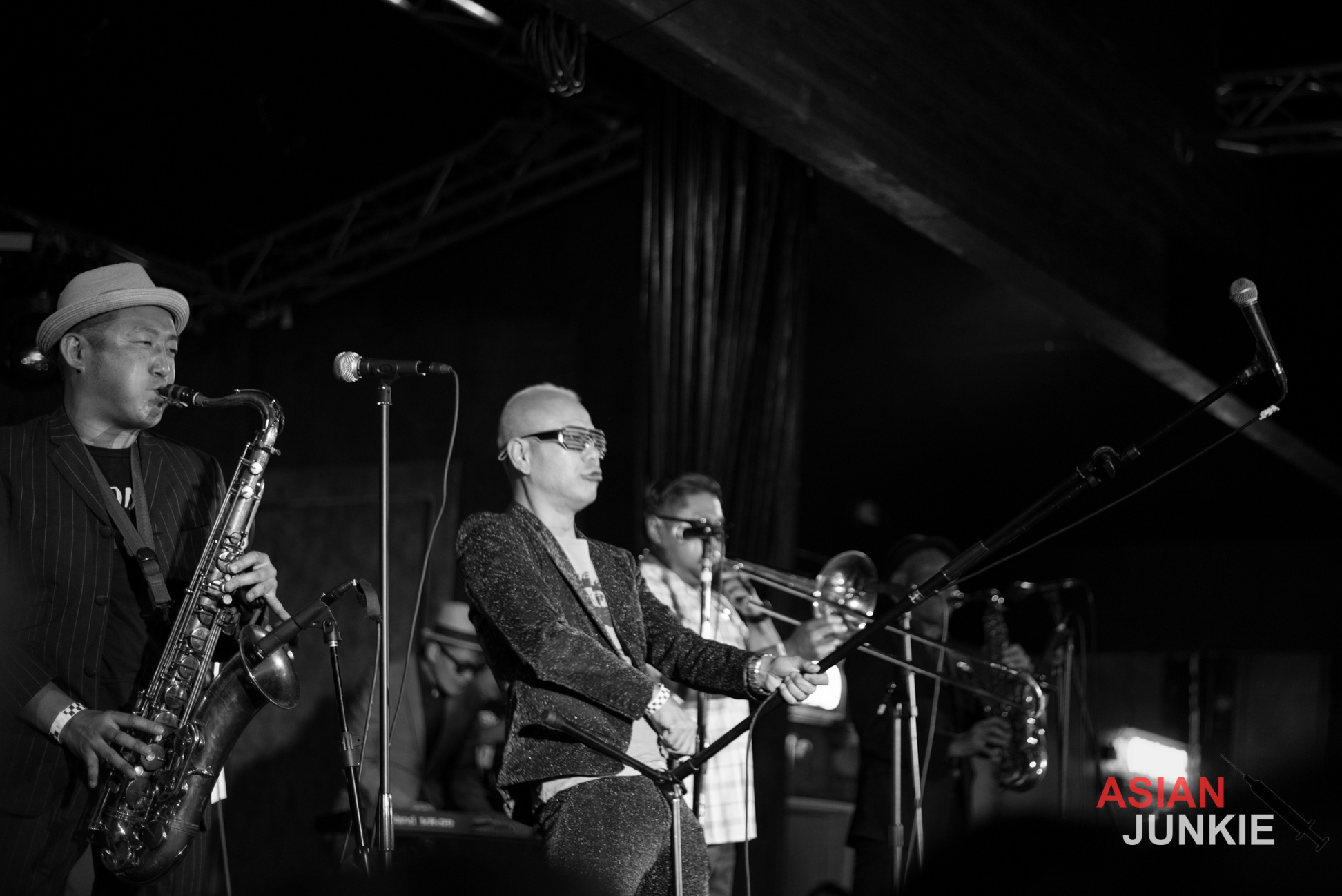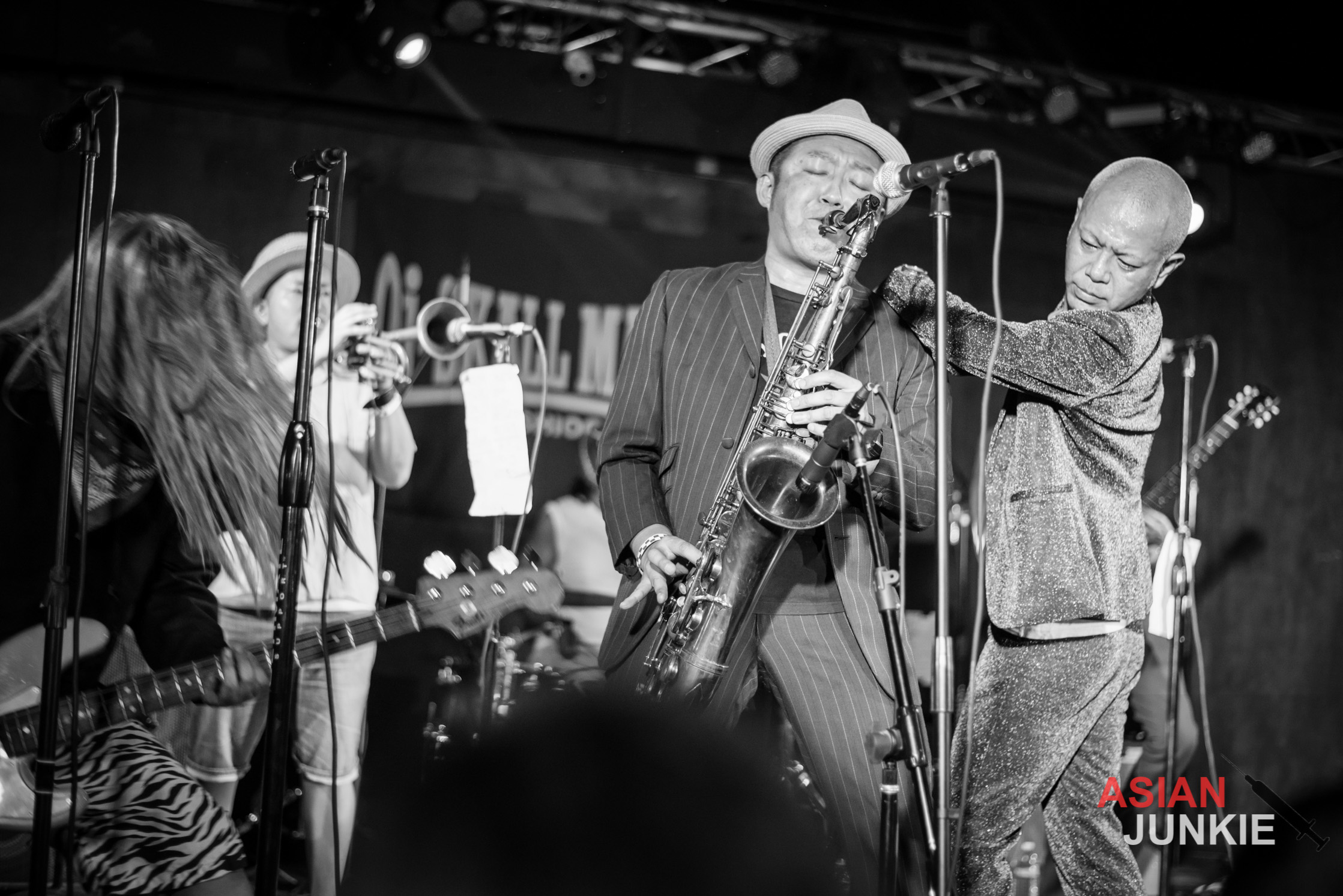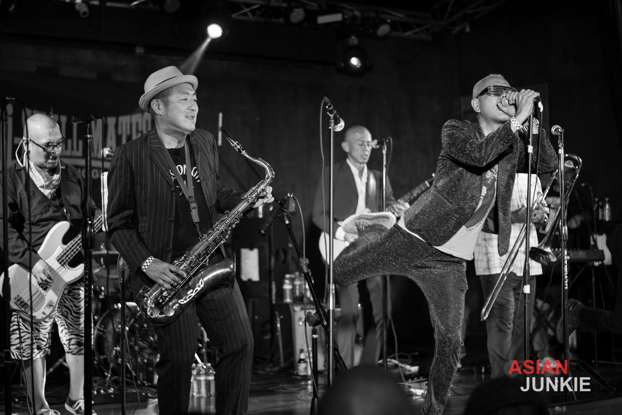 He stood out in his glittering purple suit and screamed into the microphone for song after song. With tracks like “Nishiogi Tokyo“, “Scooter Girl Scooter Boy“, “Skinhead Running“, “Justice Calling 69“, and “Ruder Rule“, the night flew by as fast as he swung the mic over his head and security snatched at crowd surfers.