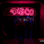 I got to Union to find the place packed like a giant sardine can, smelling of mosh pit and Pabst Blue Ribbon. There was indeed a pit roiling hard in the center of the massive dance floor while opening bands played to the crowd. This was a premier dive bar experience, complete with stage packed full of band members holding all manner of instruments, the biggest disco ball I’d ever seen hanging low above the churning mosh pit, and women with the biggest victory rolls to grace my memory. God I love vintage culture!