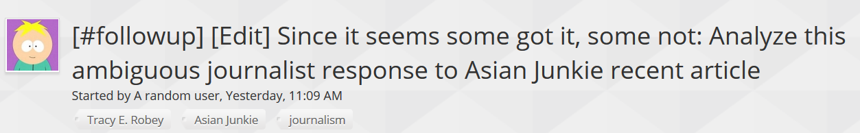 Anyway, thanks to Tracy for allowing me to use our convo and clarifying herself. Also, go read Tracy’s article, it’s quite interesting.