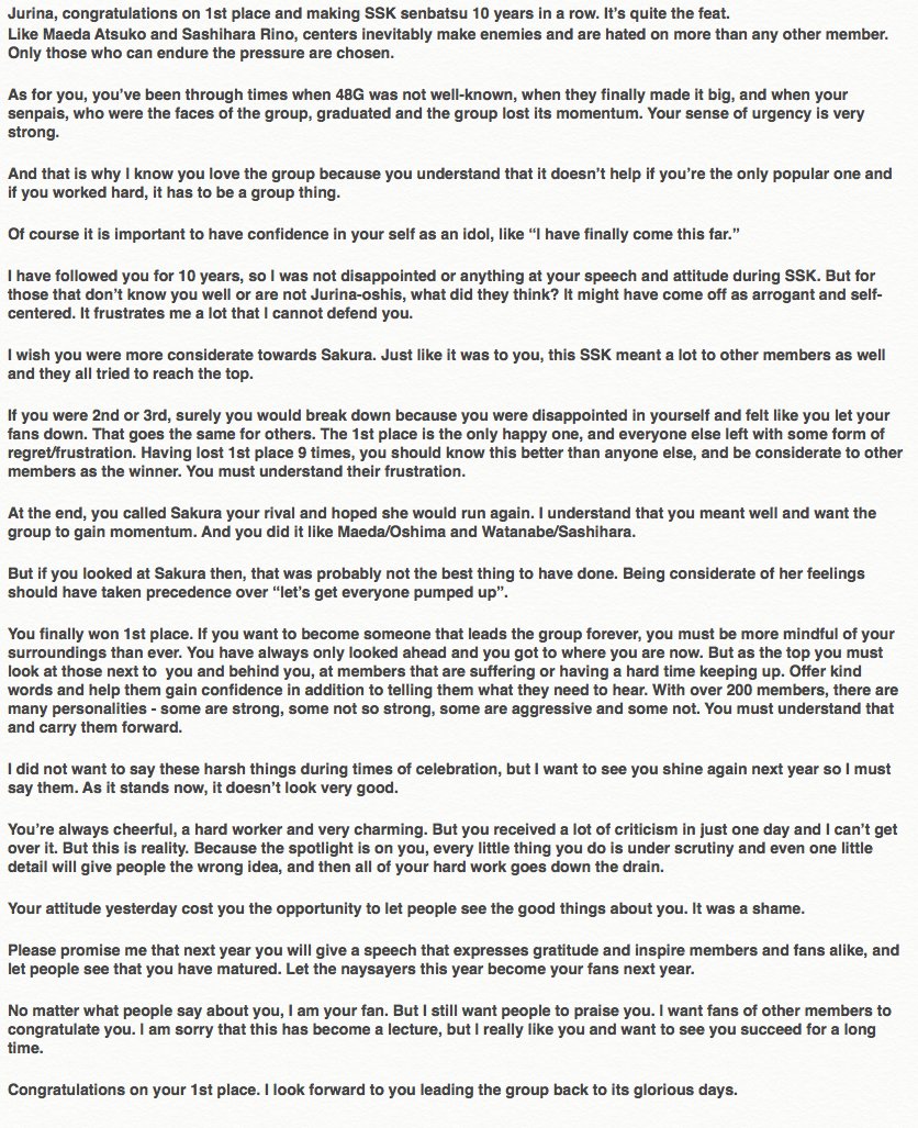 The translation of Matsui Jurina’s comments, including the parts that were wiped.