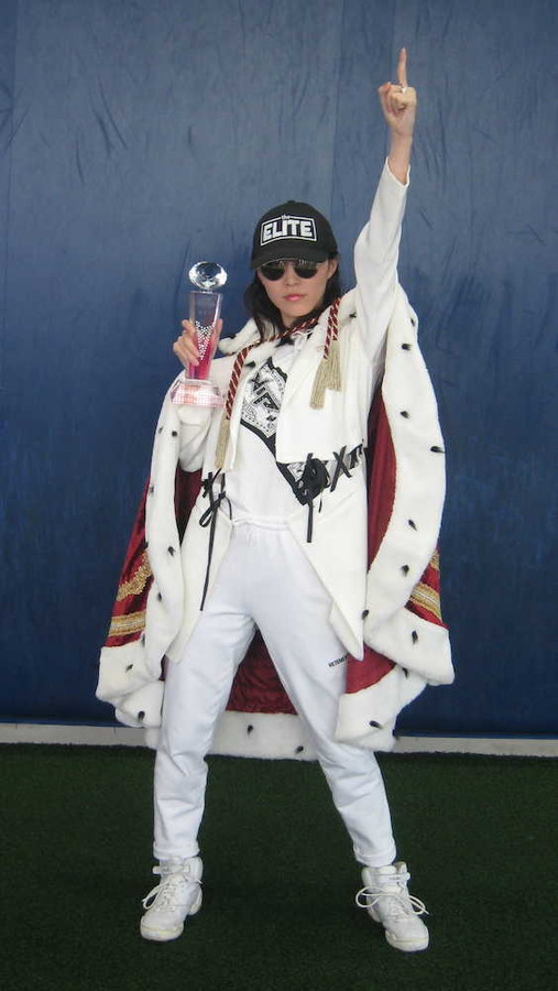 A day after winning the 10th AKB Sekai Senbatsu Sousenkyo and being crowned the Queen, at the press conference held on June 17th, Matsui Jurina (21) was dressed like Kenny Omega, the IWGP Heavyweight Champion of New Japan Pro-Wrestling, a sport that Matsui Jurina is a big fan of. Matsui Jurina declared that she will be the true champion next year and said she will be victorious for a second straight year.