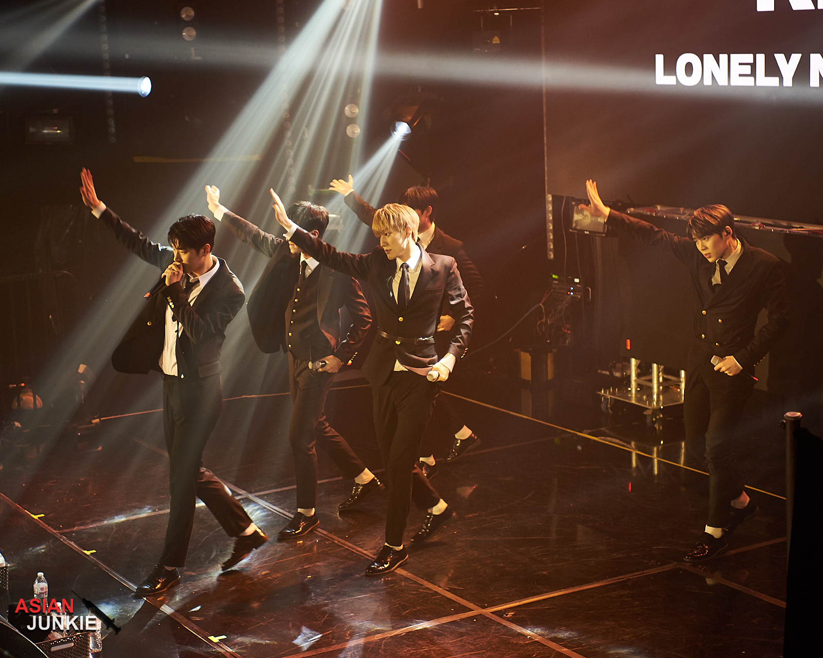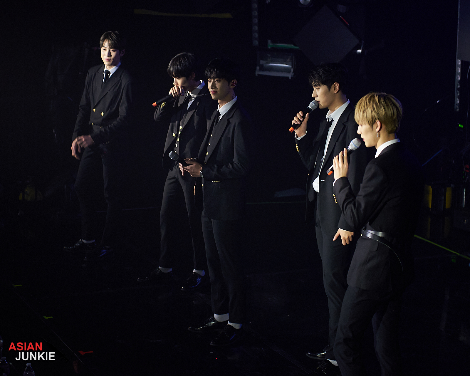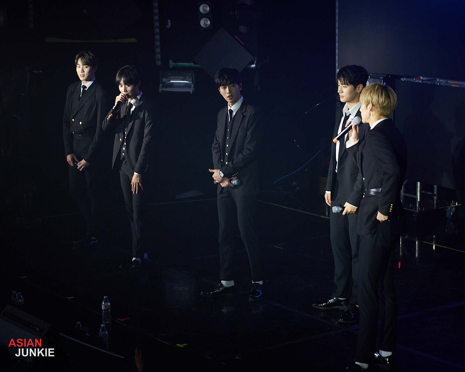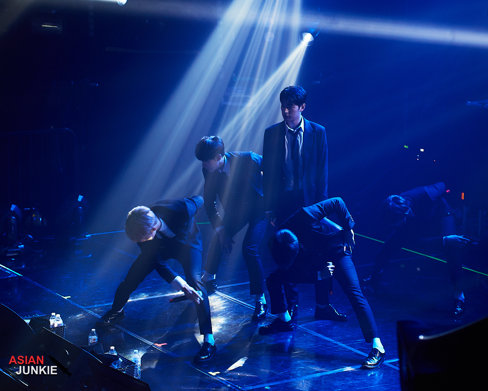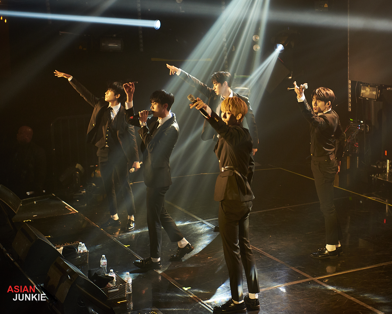 The lights dimmed low and the boys stepped out to nothing but the shimmer of the massive disco balls that hung above the audience. Jihun, Seoham, Heejun, Inseong, and Dongwon positioned themselves center stage and proceeded to absolutely blow our collective minds.
