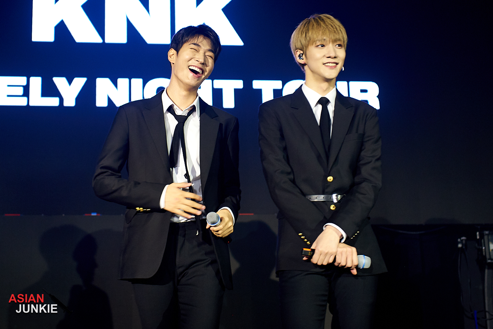 KNK didn’t stop there. They chatted it up with the crowd and even called numbers given on special ticket flyers given to the audience at the door, giving away special gifts to lucky members of the audience. The generosity was refreshing, especially after seeing the massive pile of gifts MMT had collected at the front of the venue for the group from fans.