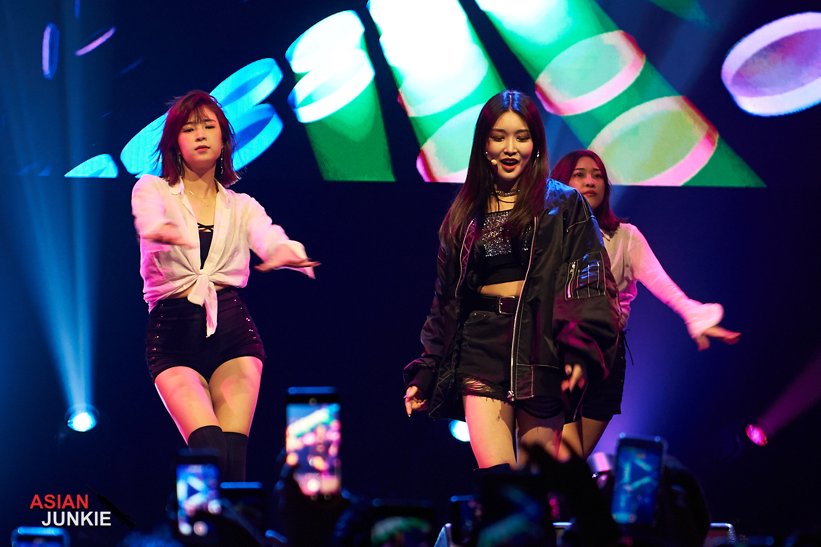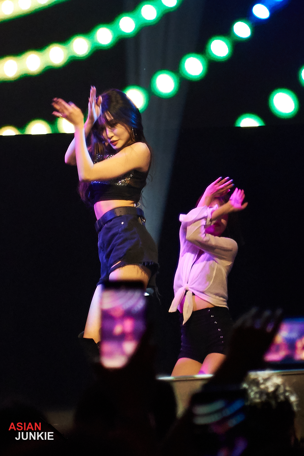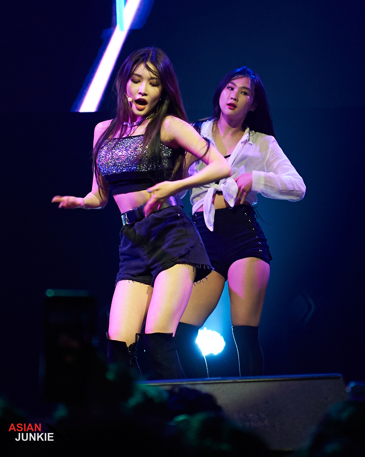 Chungha flew through a set list of her own hits such as “Do It“, “Rollercoaster“, “Love U“, and “Gotta Go“, as well as a dance choreo cover of Ariana Grande‘s own “Seven Rings” (which was absolute fire), and even closed her set with a live mic cover of the Jessie J, Nicki Minaj, and Ariana hit “Bang Bang“, which included Chungha rapping!