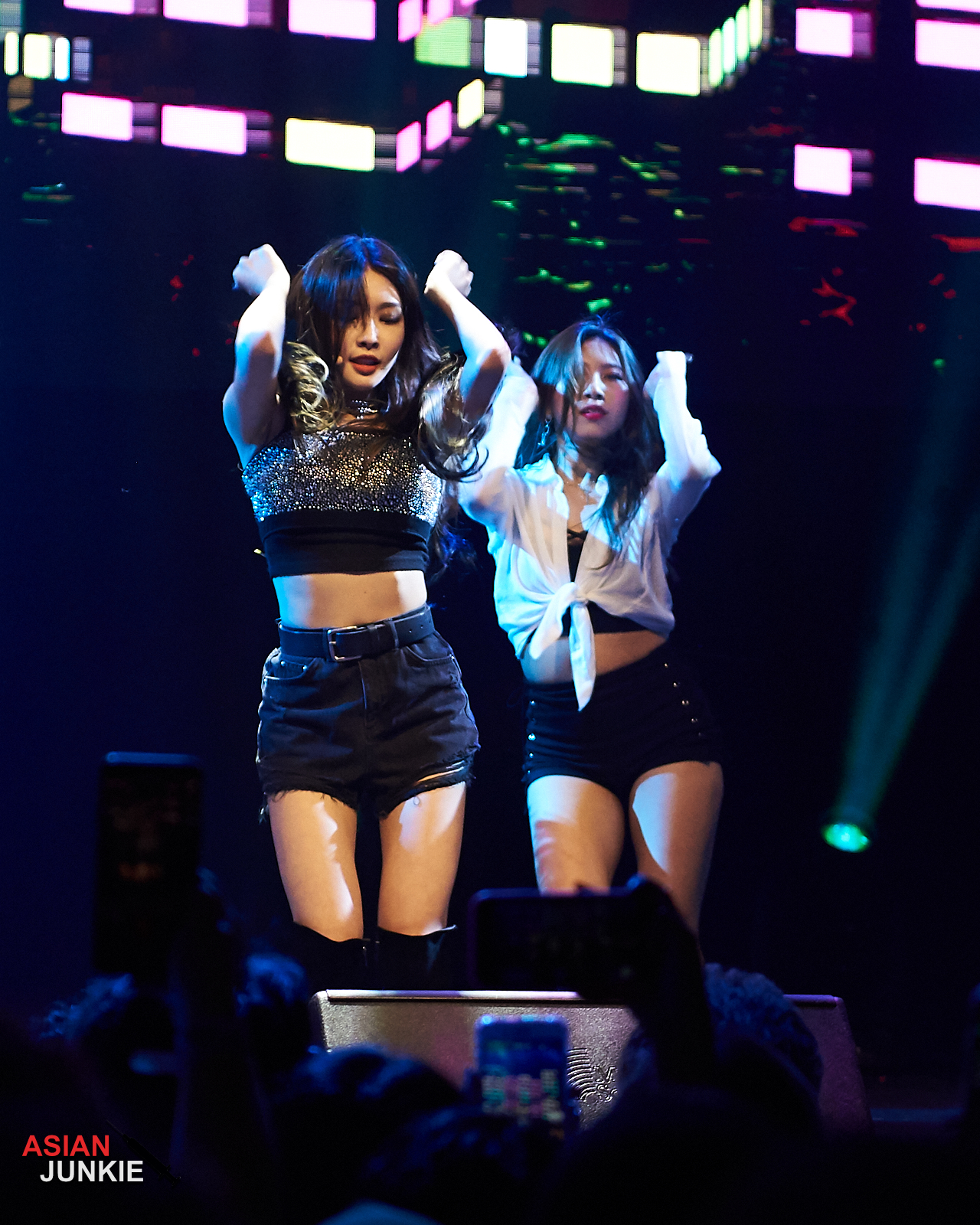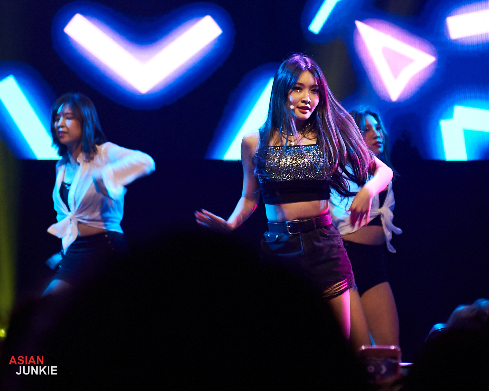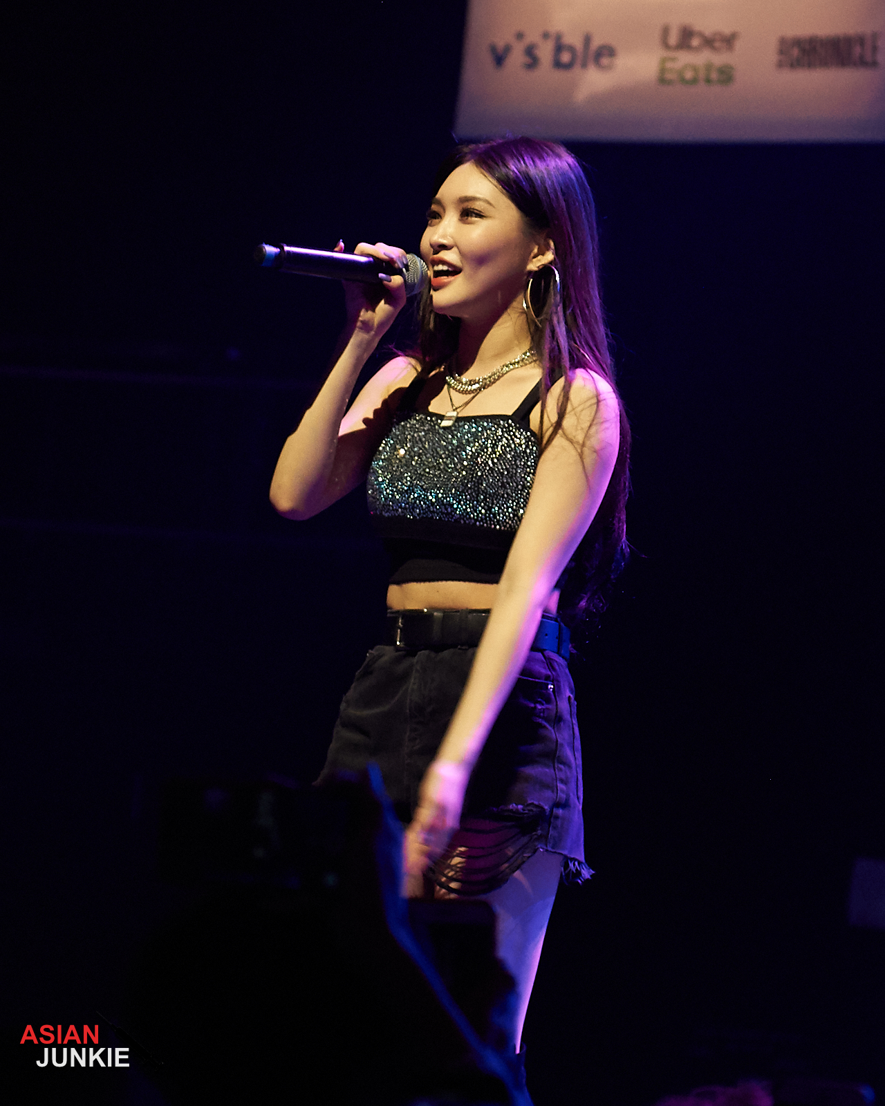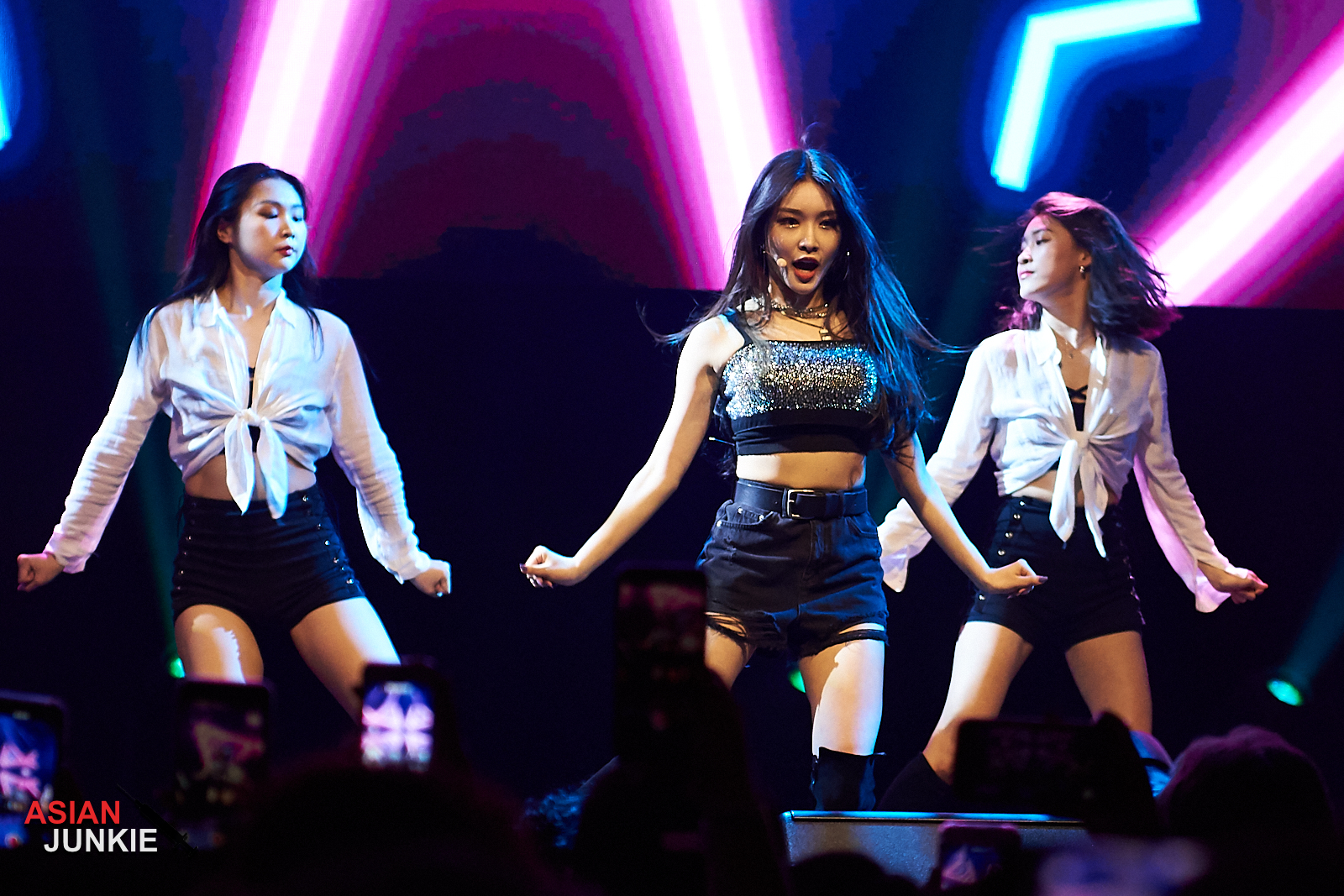 Chungha flew through a set list of her own hits such as “Do It“, “Rollercoaster“, “Love U“, and “Gotta Go“, as well as a dance choreo cover of Ariana Grande‘s own “Seven Rings” (which was absolute fire), and even closed her set with a live mic cover of the Jessie J, Nicki Minaj, and Ariana hit “Bang Bang“, which included Chungha rapping!
