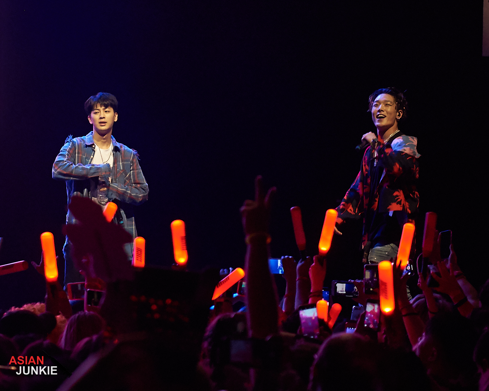 And it wasn’t just Bobby on the mic speaking English. Every member got involved, talking to the audience and telling the crowd how happy they were to finally be in the US and to see their stateside fans. They smiled warmly at the sea of blood orange Konbats and laughed at the giant cardboard cutouts of their faces floating in the crowd.
