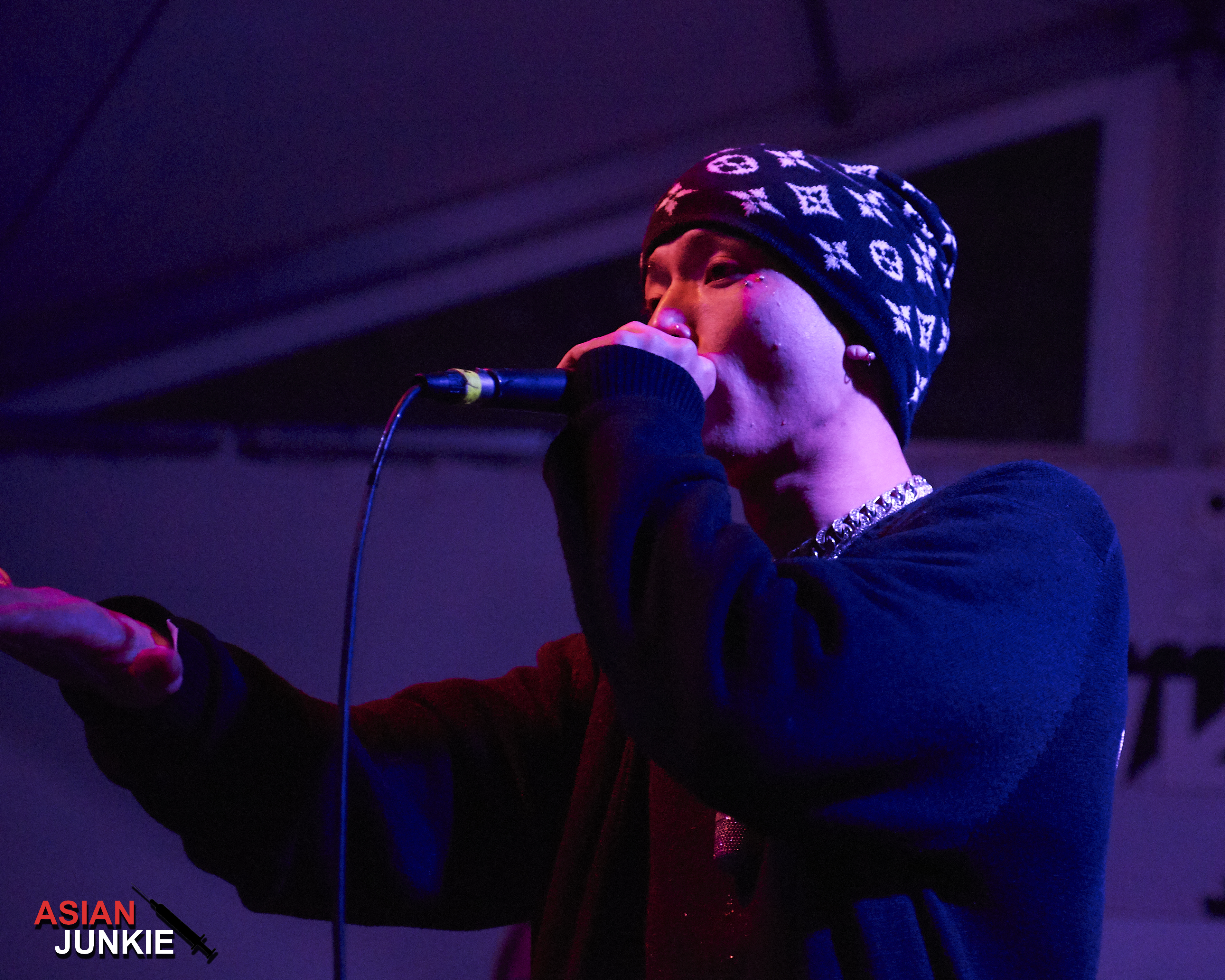 Niahn took to the stage first — young, shy, and quiet — facing an audience who watched him skeptically as he took the mic in his hands. “Hello, I am Niahn of MKIT RAIN,” he practically whispered into the mic, and with that he began the most feelsy set of emo sexy R&B tracks I’d heard all week. His voice was like a balm, soothing in every way. The collective skepticism completely melted away as he coaxed screams from the crowd and girls swooned around us. He warmed up quickly as his shyness evaporated. MKIT RAIN has always been a collective crew of hardcore rappers, but Niahn is a fresh addition to the team and brings in a bit of sound diversity with his smooth crooning and adorable stage presence.