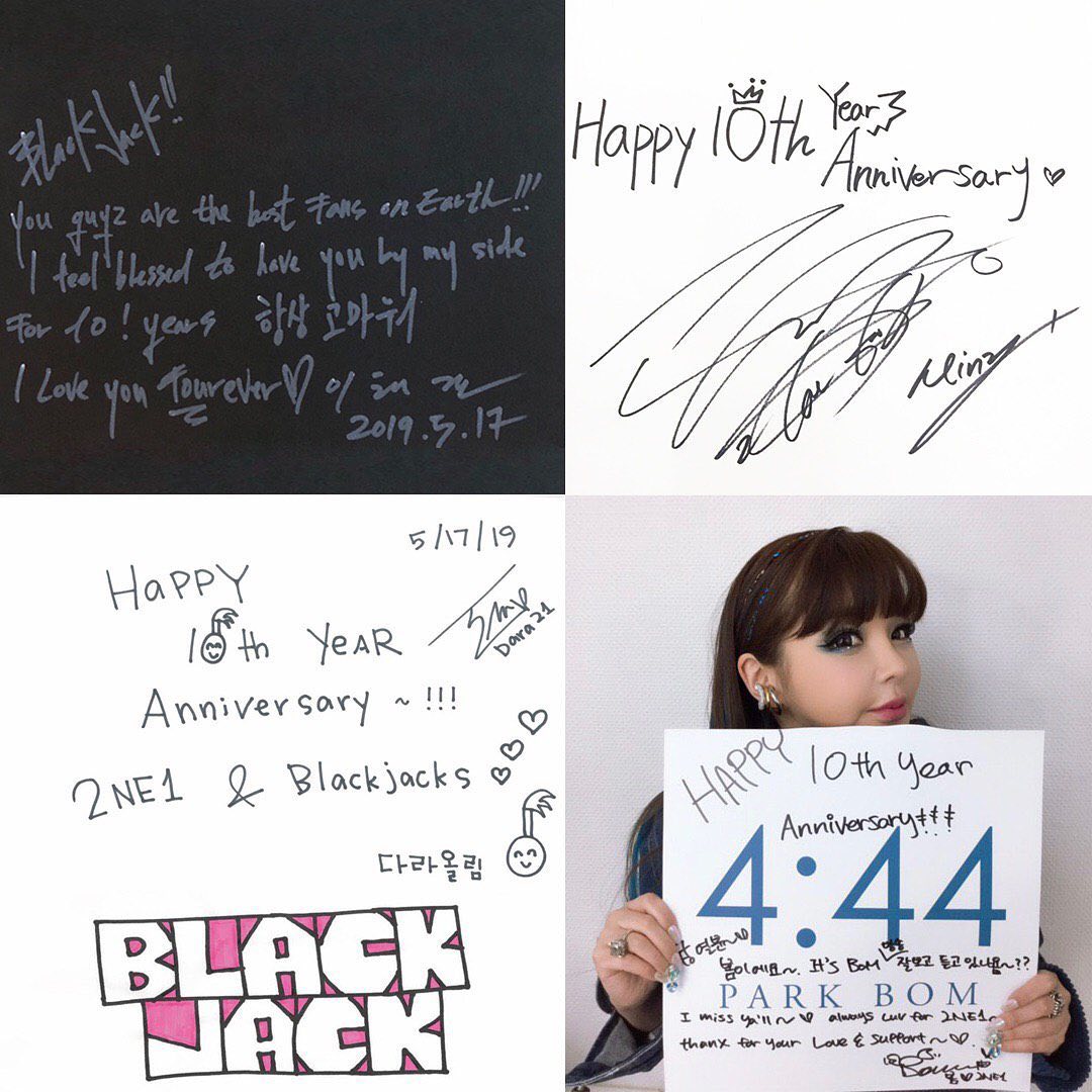 All four wrote messages commemorating 2NE1’s 10th anniversary.