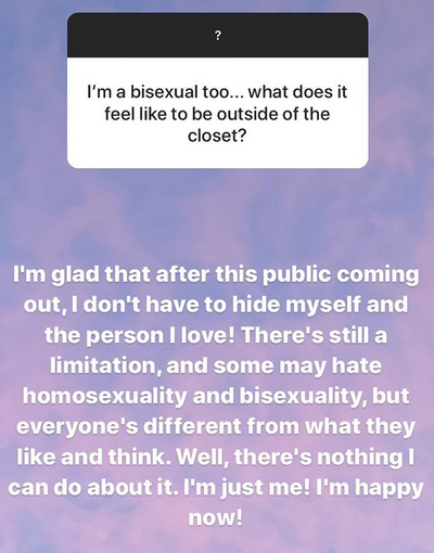 That surprised some people a bit, and during a Q&A on Instagram Stories she confirmed that she is bisexual and has a girlfriend. In fact, she’s still answering questions about it as I write this.