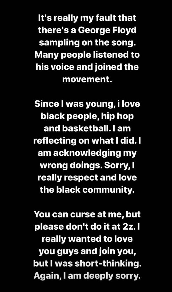 Then 2Z issued a statement apologizing from the official account as well.