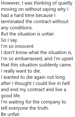 Following Minah’s disturbing update about the company telling her to keep silent and that she tried to take her own life recently, WKS ENE responded to her statements by saying that her accusations are false and saying they would take legal action.