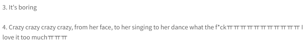 A similar formula to the elite trio of “I’m So Sick“, “Eung Eung“, and “Dumhdurum“, but a bit lesser in every aspect. The loop isn’t as catchy, the “dilemma” repetition before Eunji‘s vocal enters saps energy, and the rap break is unnecessary. Still, the formula itself is hard to resist.