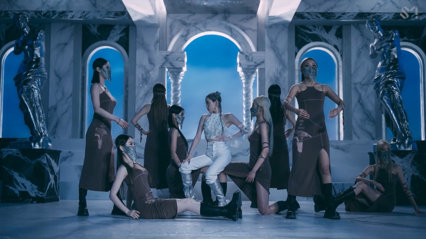 If you’ve already seen the music video, the connection seems rather obvious, with Taeyeon playing the role of Artemis, as evidenced by the bow and the Moon references, and based on the sets she seems to be on Olympus.