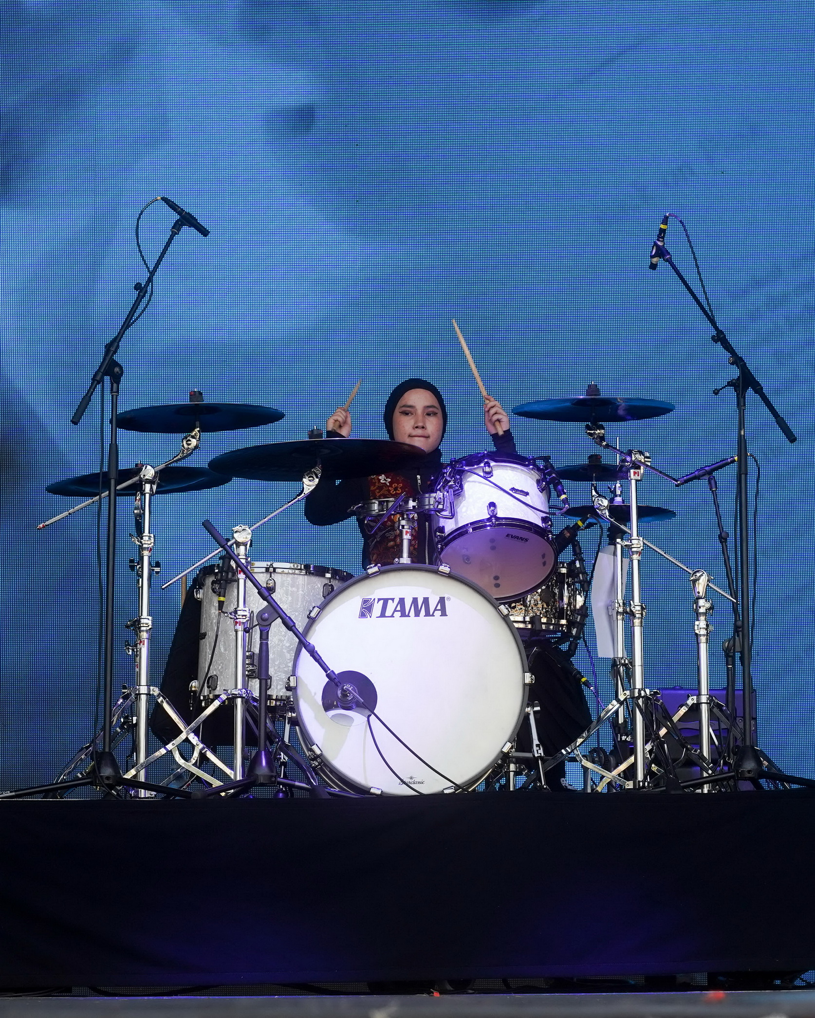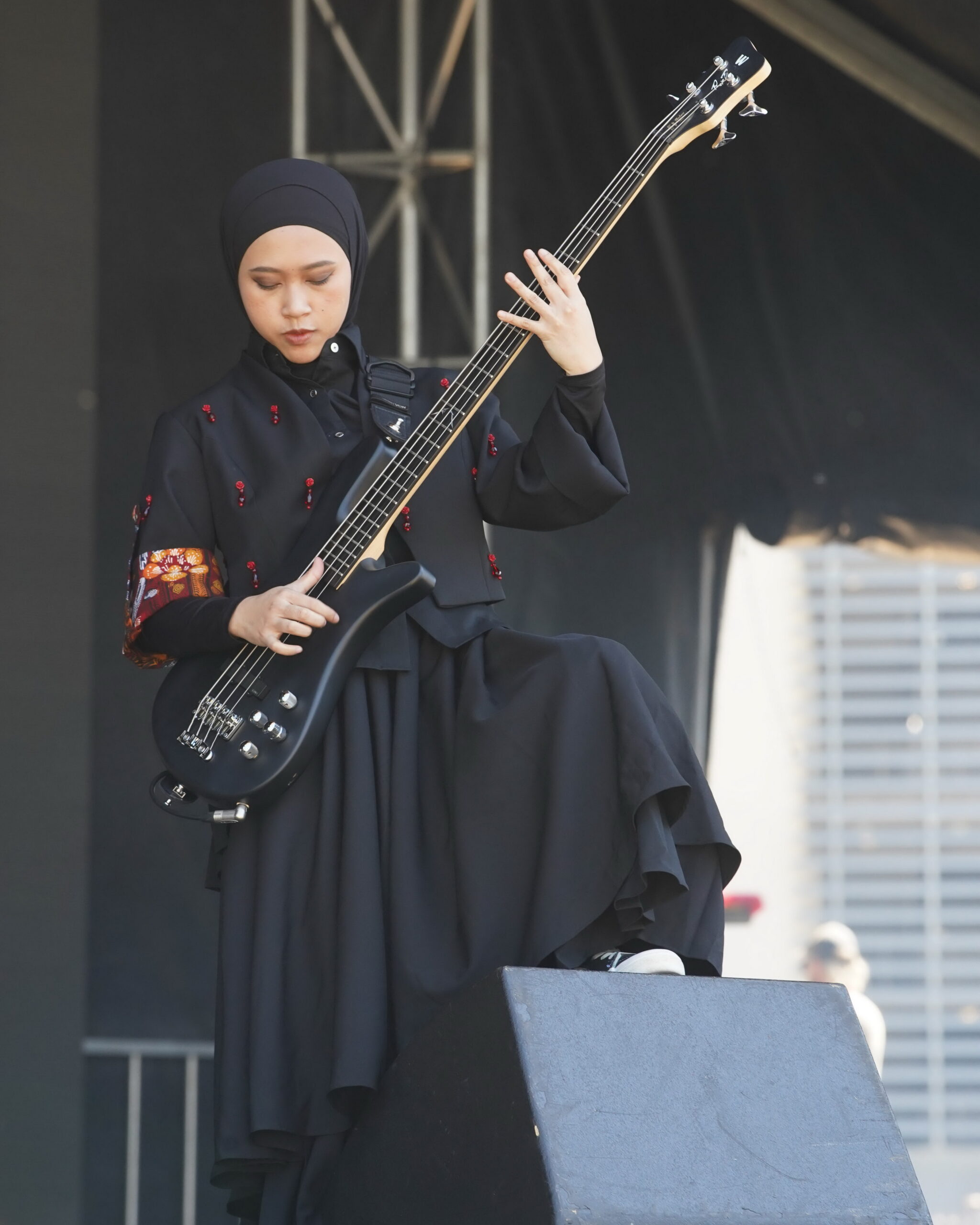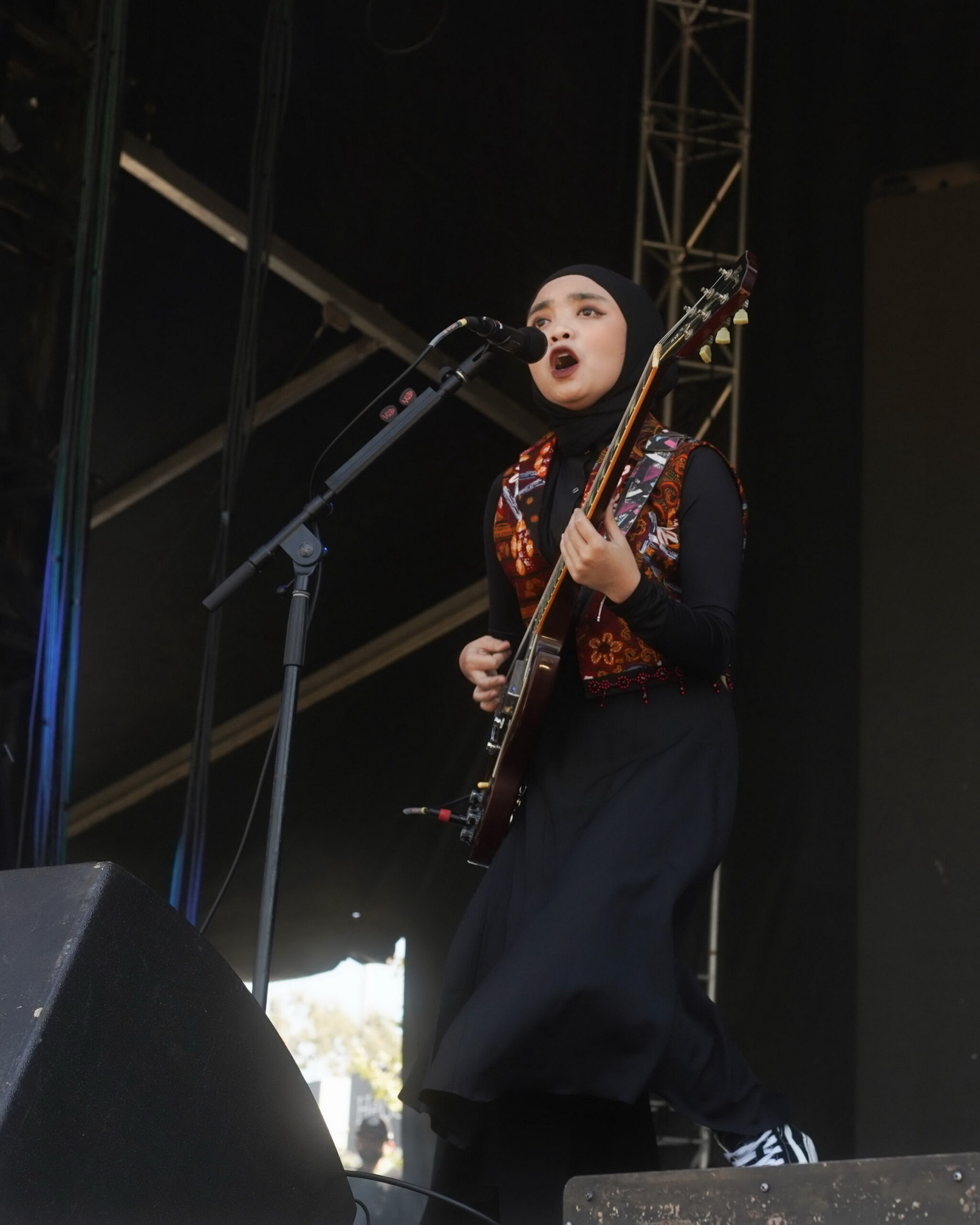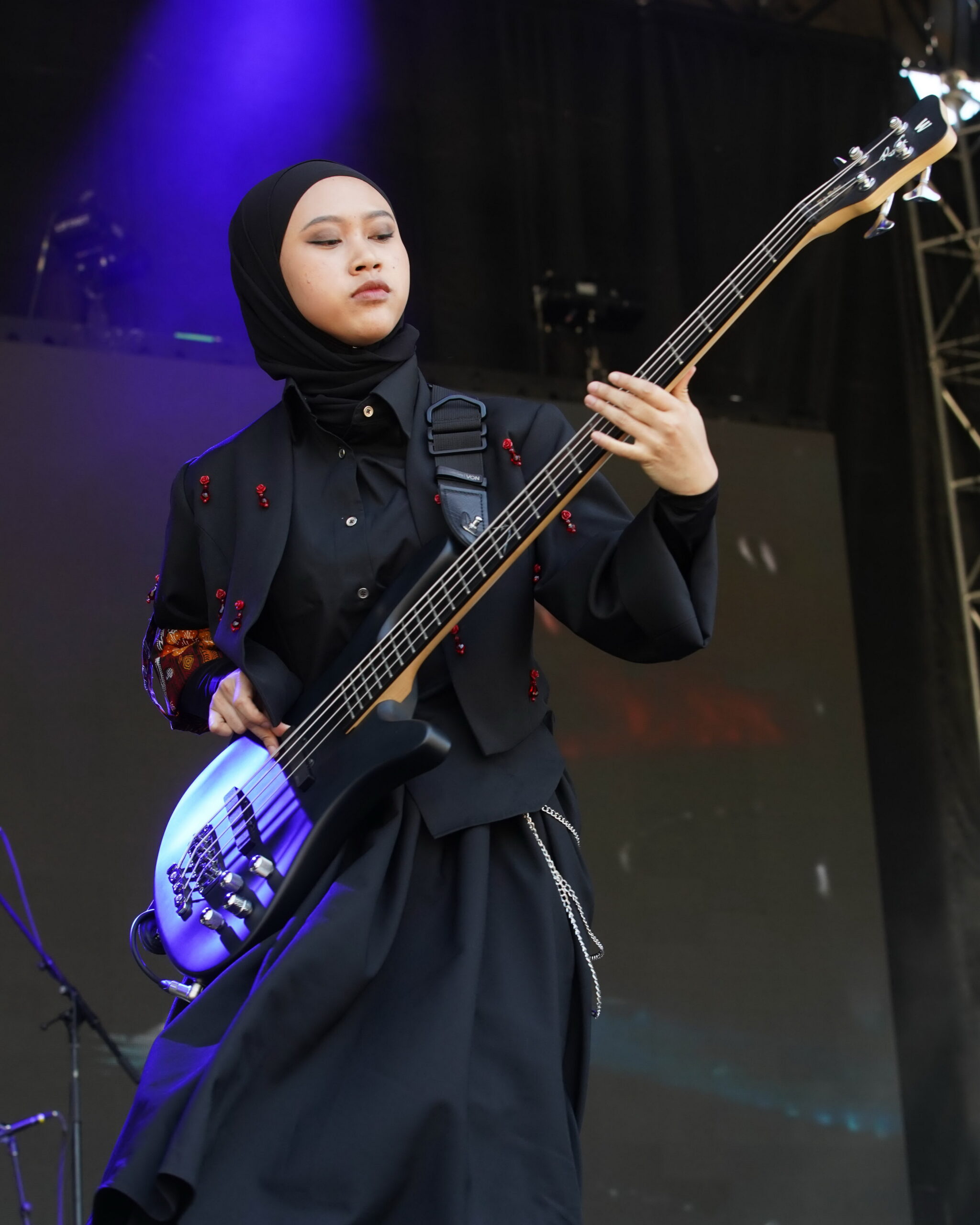 Oh, you don’t know Baceprot? Baceprot is a phenomenal metal band from Indonesia, and seeing three Javanese women in hijabs absolutely wail on stage and deliver a most amazing performance was a treat. We decided to try to get a few more artists from the Honda Double Happiness stage, and Baceprot did not disappoint.