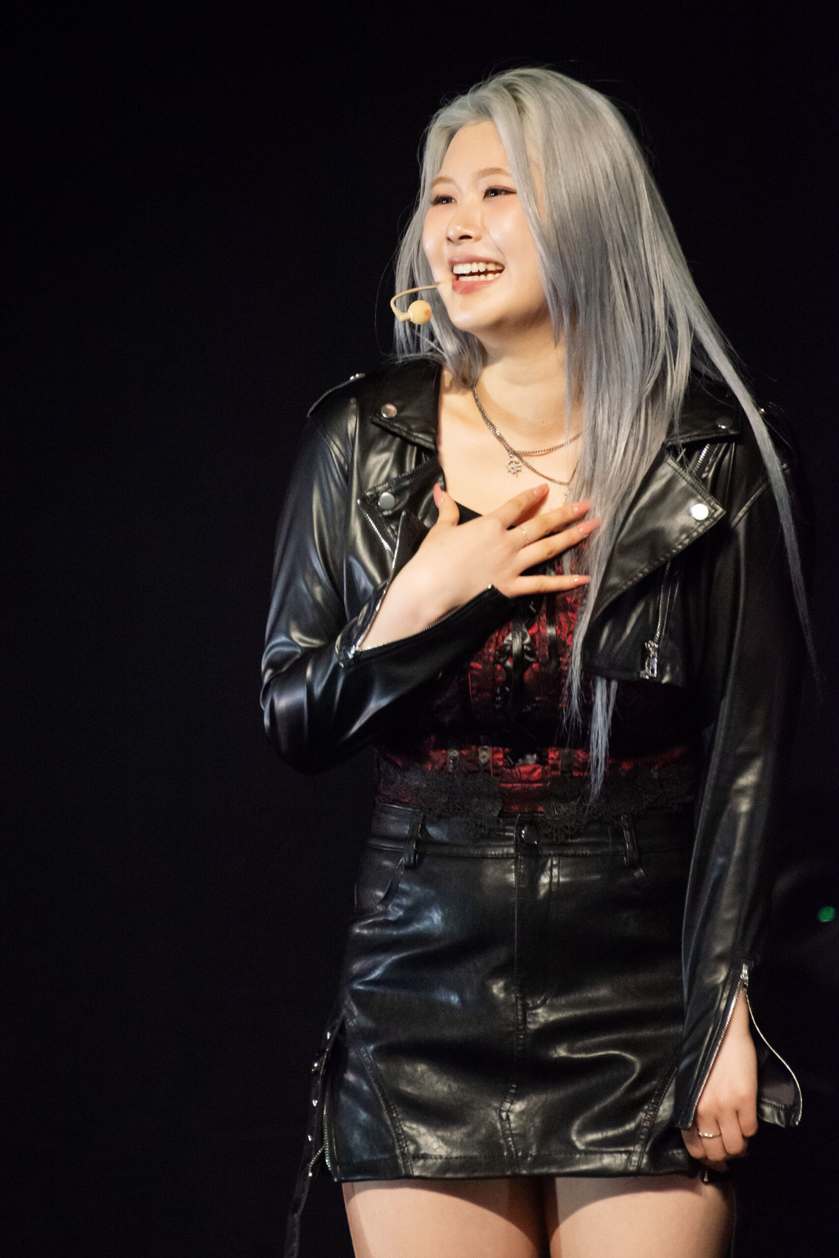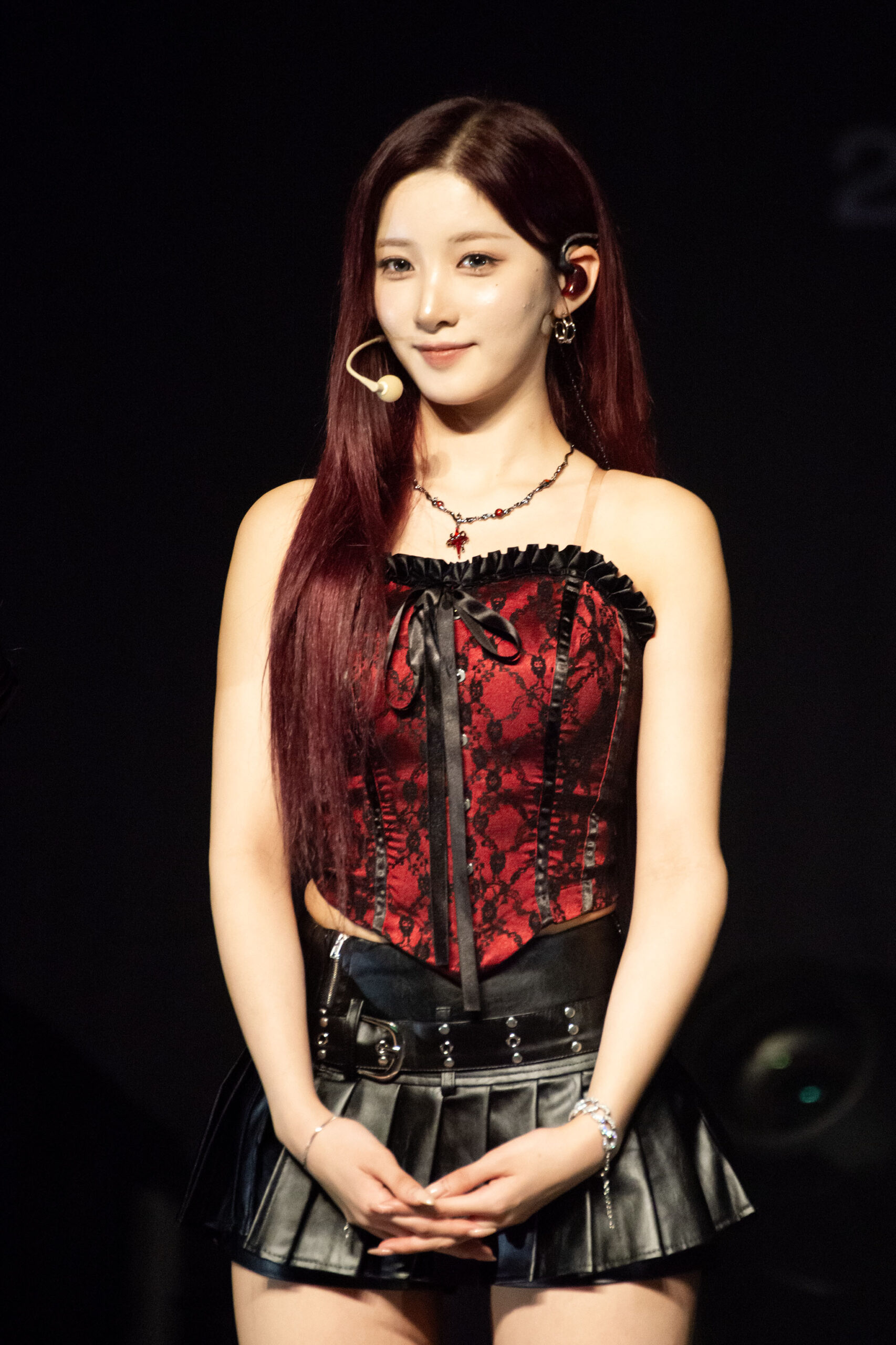 And the three different pairs did not disappoint. Coming back onstage with new lacey, red and black outfits, Goeun and Ireh led the performances with a powerful cover of Jungkook’s “Standing Next To You.” The duo created their own mic choreography to go along with the original dance. After them came Swan and Yuki who came prepared with a sizzling cover of Ariana Grande’s “Side To Side.” Determined to not be outdone, Yuki created a unique rap in Japanese, emulating the energy and flow of Nicki Minaj’s original version. “I wrote lyrics to show off my confident side,” said Yuki. Each stage had a variety segment for each unit and gave more insight into PURPLE KISS’ artistry and talent. Finishing off the stages with a cover of Sunmi’s “TAIL,” Dosie and Chaein came out guns blazing. All eyes were on them as their confident stage presence captivated the crowd.