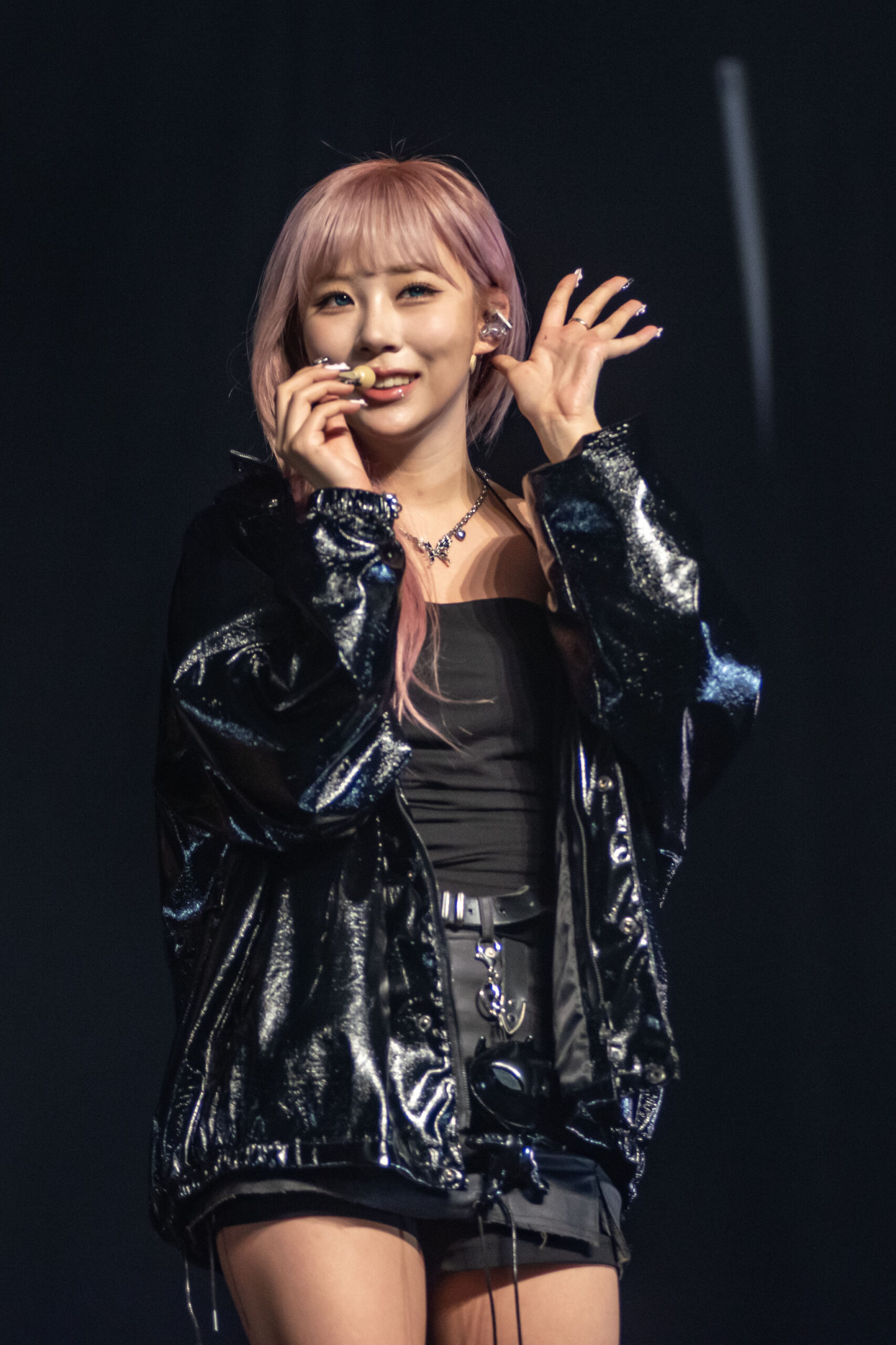 Opening with the crowd rousing song, “My Heart Skip A Beat,” PURPLE KISS was determined to show off their growth since last time. “We usually save this song for last,” said Goeun, as she was catching her breath. Donning girl crush outfits with a mix of black tops and shorts, their cool, polished aesthetic blended well with their energetic kickoff. Excited to see Plorys, they took a moment to speak directly to the crowd before jumping into the upbeat track, “Pretty Psycho.”