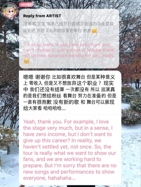 Today marked the sixth anniversary of EVERGLOW, and member Yiren revealed to fans that Yuehua Entertainment has not paid her or any of the members since their 2019 debut, and apologized for the lack of new content, highlighting the importance of the upcoming tour.