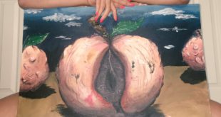 Grace has painted a vagina peach, aren’t we lucky? As someone who did two-thirds of their degree in Critical & Curatorial Practices, I’m just glad can finally use this skill …
