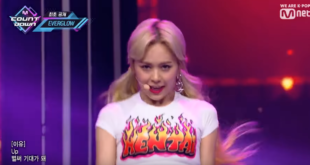 EVERGLOW member E:U used their comeback stage on M! Countdown to express her feelings about hentai on her shirt, mainly that she seems to think it’s fire … or burn …